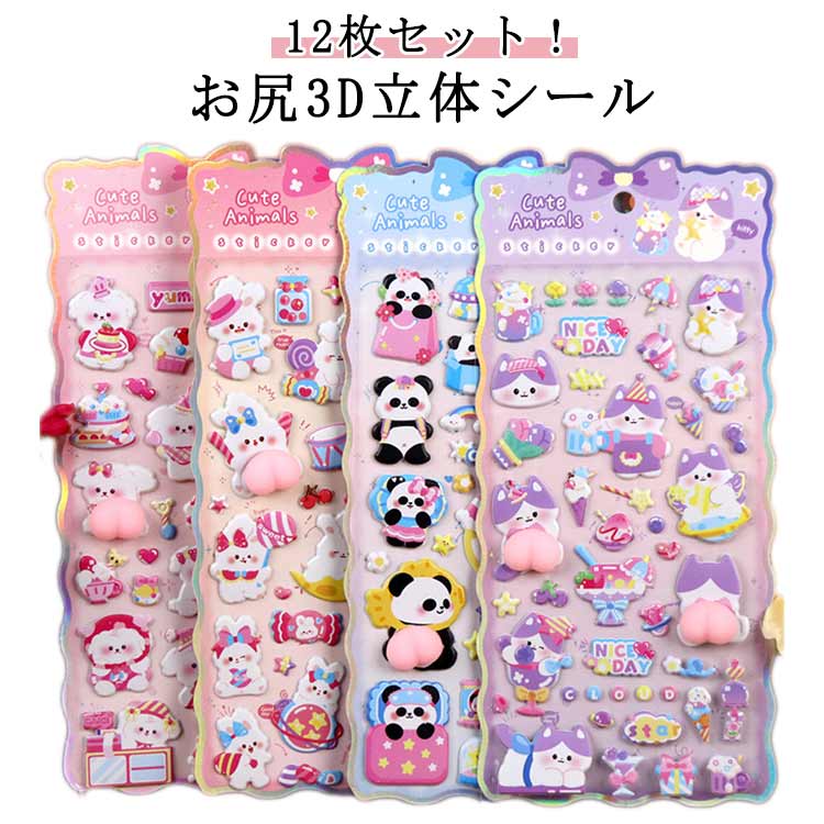 12枚セット お尻シール おしりシール 文房具 事務用品 ラベル ステッカー シール ステッカー 新作