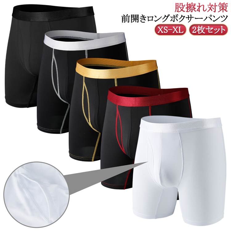 2枚セット 股擦れ対策 ロングボクサー メンズ インナー 下着 ボクサーパンツ 特集 赤2 金2 白2 黒2 銀2 赤+金 赤+白 赤+黒 赤+銀 金+白 金+黒 金+銀 白+黒 白+銀 黒+銀 XS S M L XL