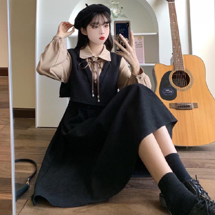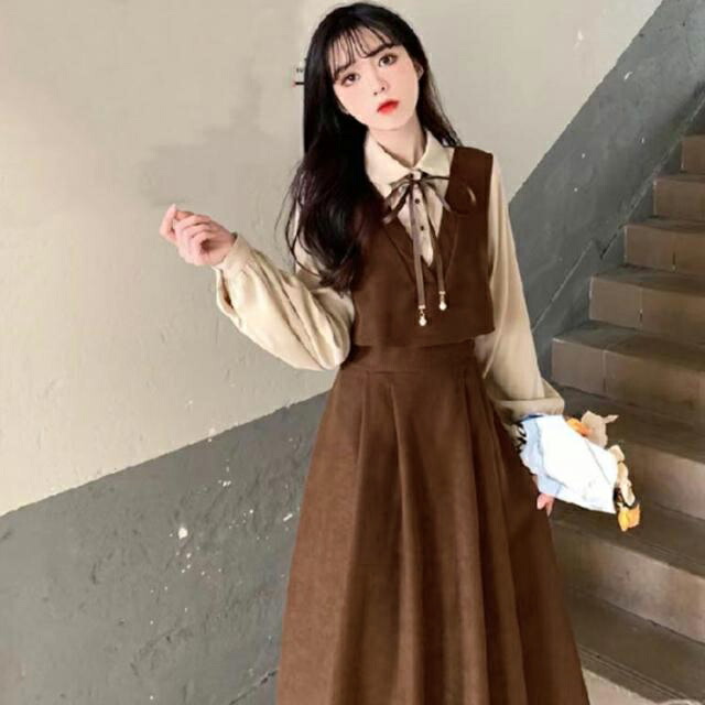 ワンピース レディース 春 重ね着風 レディースファッション 続々登場 ブラウン ワインレッド ブラック S M L XL 2XL