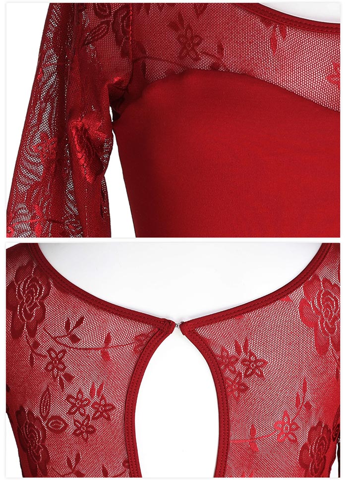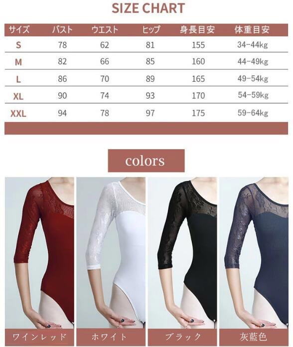 バレエ レオタード 大人 7分袖 花刺 スポーツ アウトドア 豊富 ブラック レッド ホワイト 灰藍色 S M L XL XXL