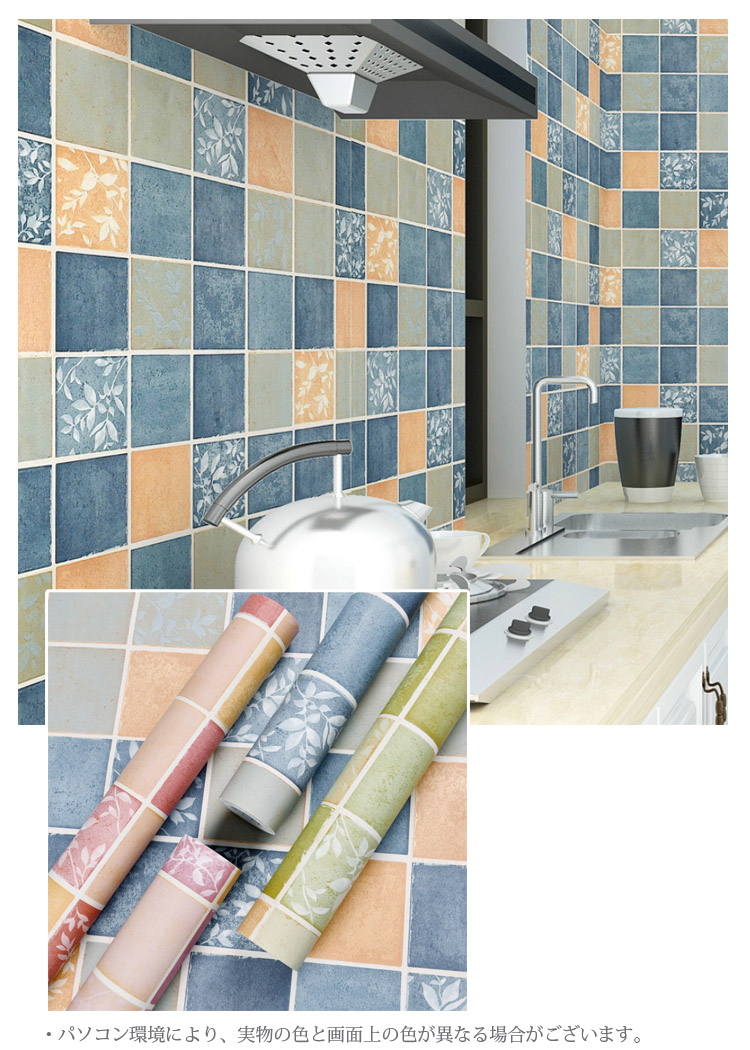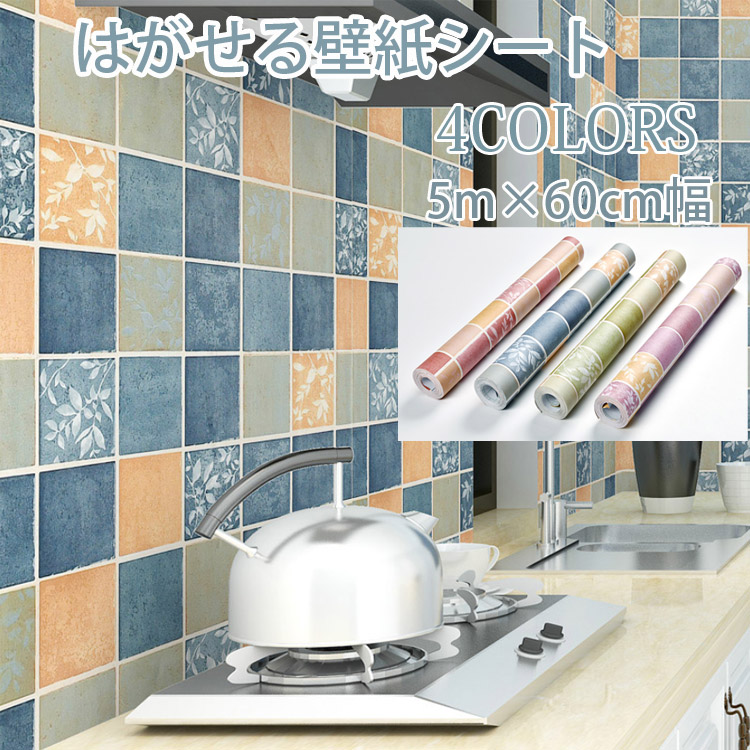 キッチンシート壁紙シールキッチンデコレ ブルー グリーン パープル レッド