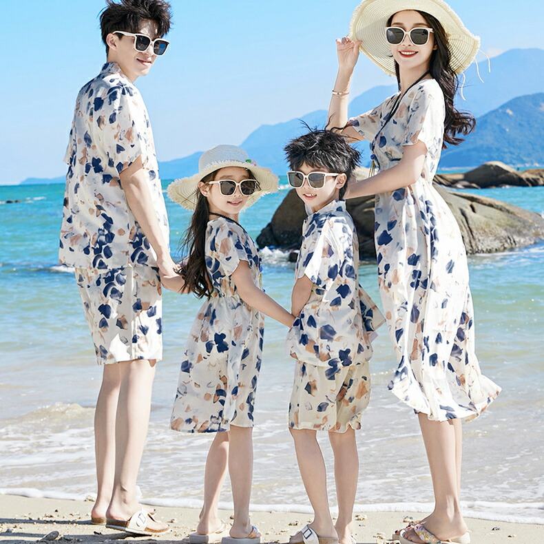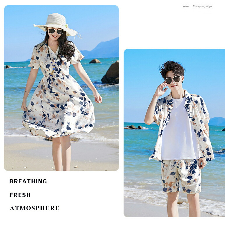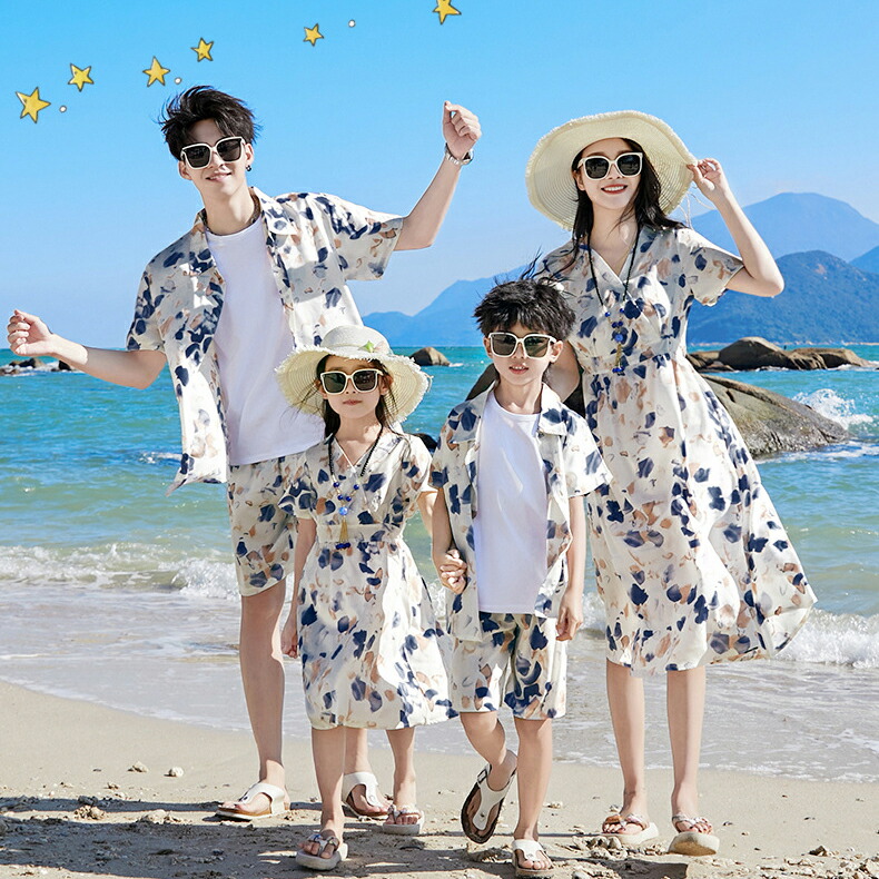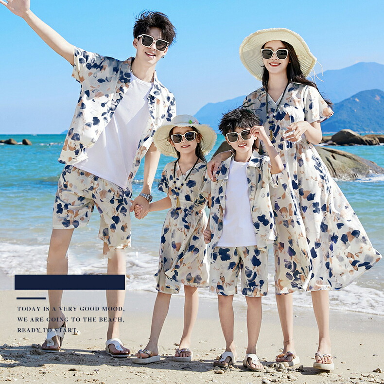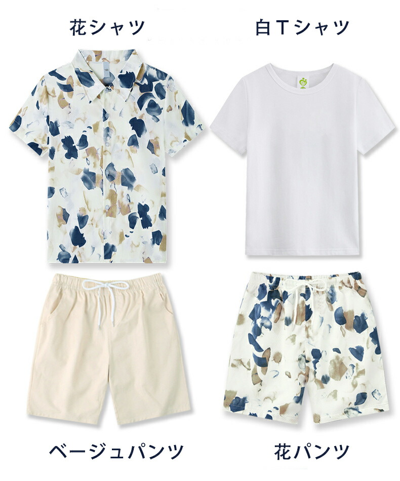 親子コーデ シャツ 親子 ペアルック 白Tシャツ 花シャツ ベージュパンツ 花パンツ 花シャツ+花パンツ ワンピース 90 100 110 120 130 140 150 160 S M L XL 2XL 3XL 4XL