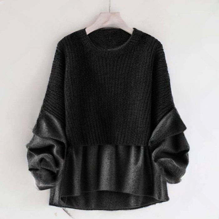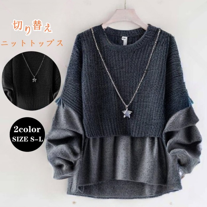 ニットセーター 切替 ニットトップス トップス ニット セーター セーター 豊富 ダークグレー ブラック S M L