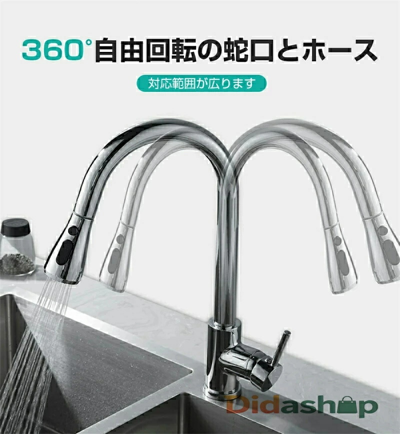 水栓 キッチン 混合 シングル キッチ シルバー ブラック