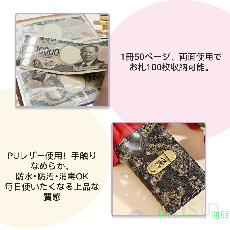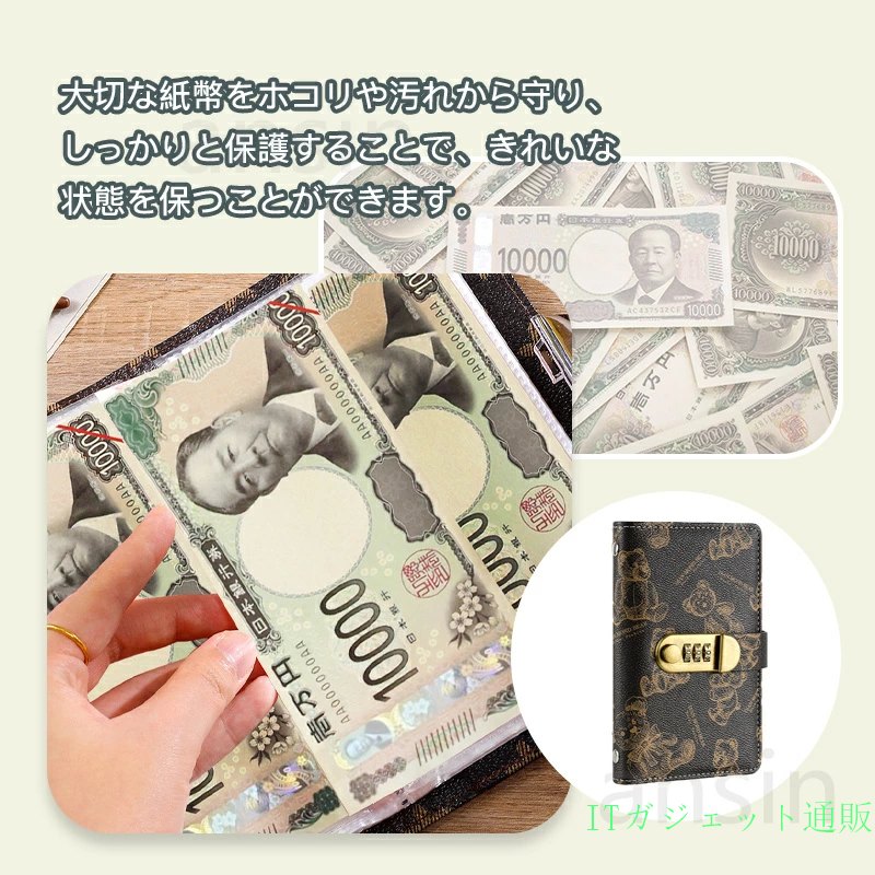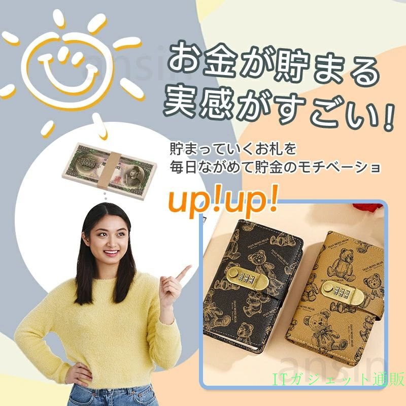 お札 貯金箱 お札封筒貯金 くま柄 ダ ベージュ ブラウン ブラック
