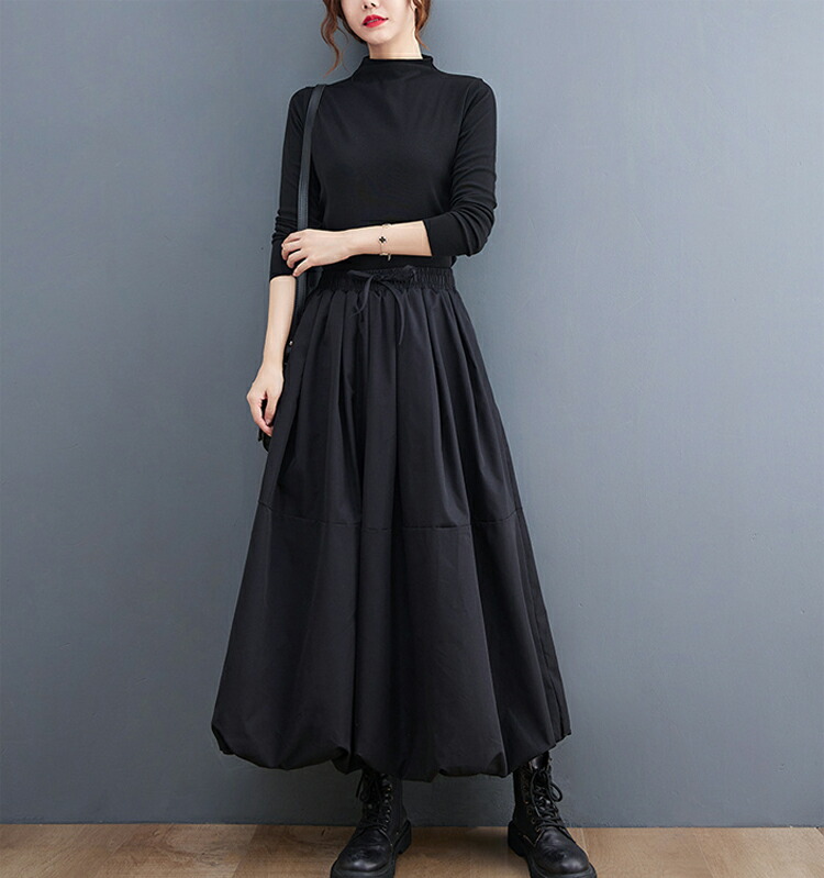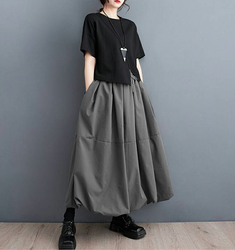 50代 コクーン スカート バルーン ボトムス スカート 人気 ブラック グレー カーキグリーン