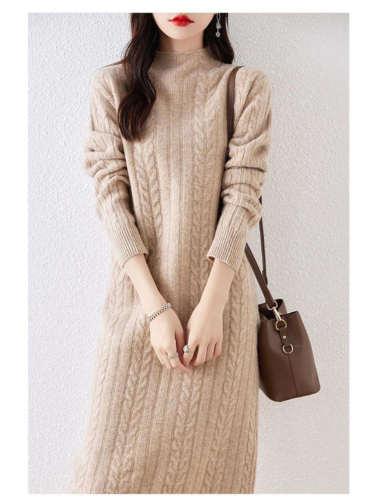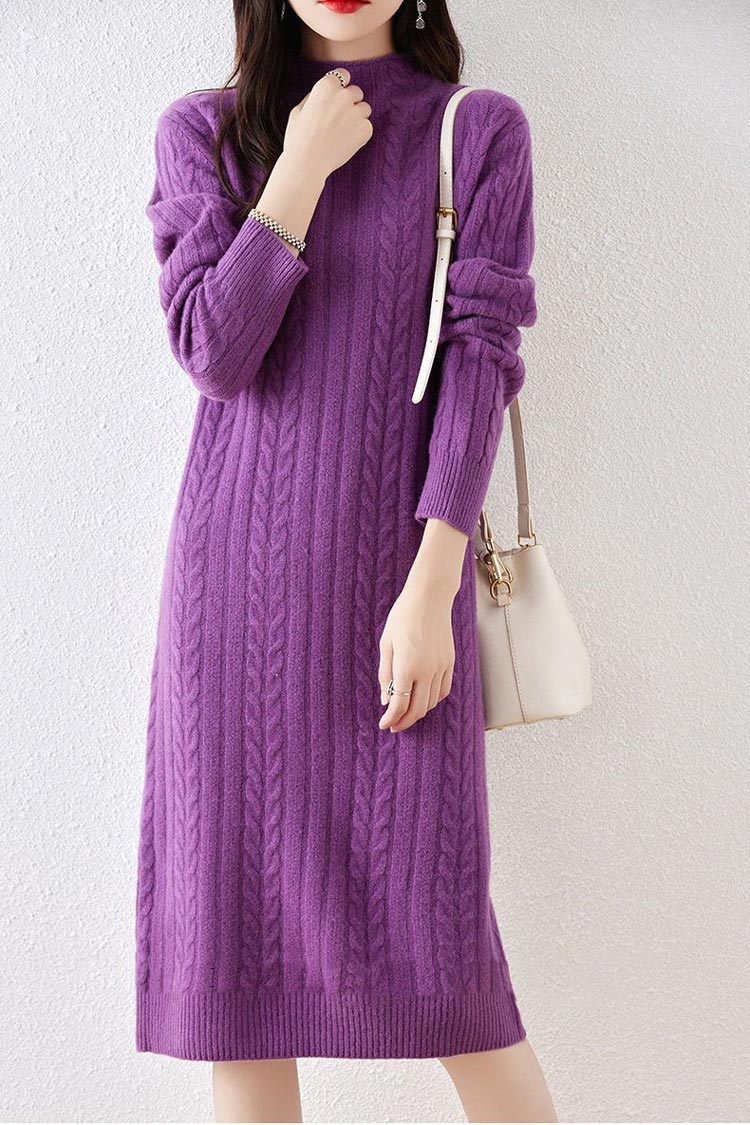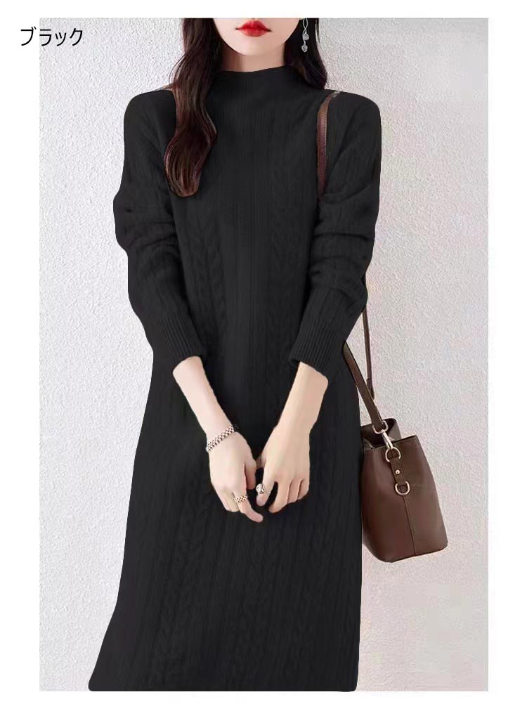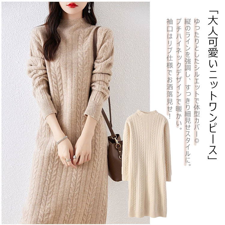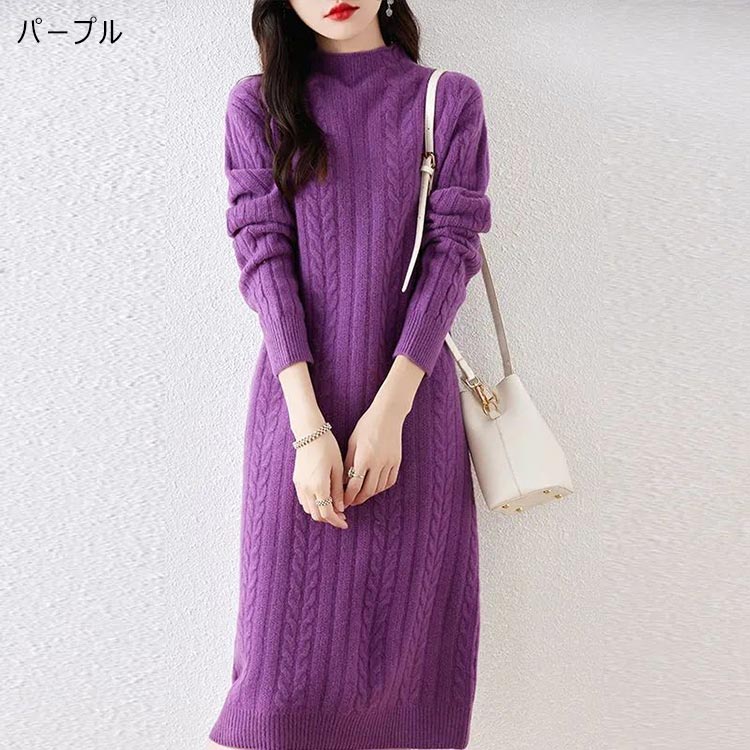 ケーブル ニット ワンピース レディー レディースファッション 続々登場 アイボリー ラクダ色 ブラック ピンク パープル