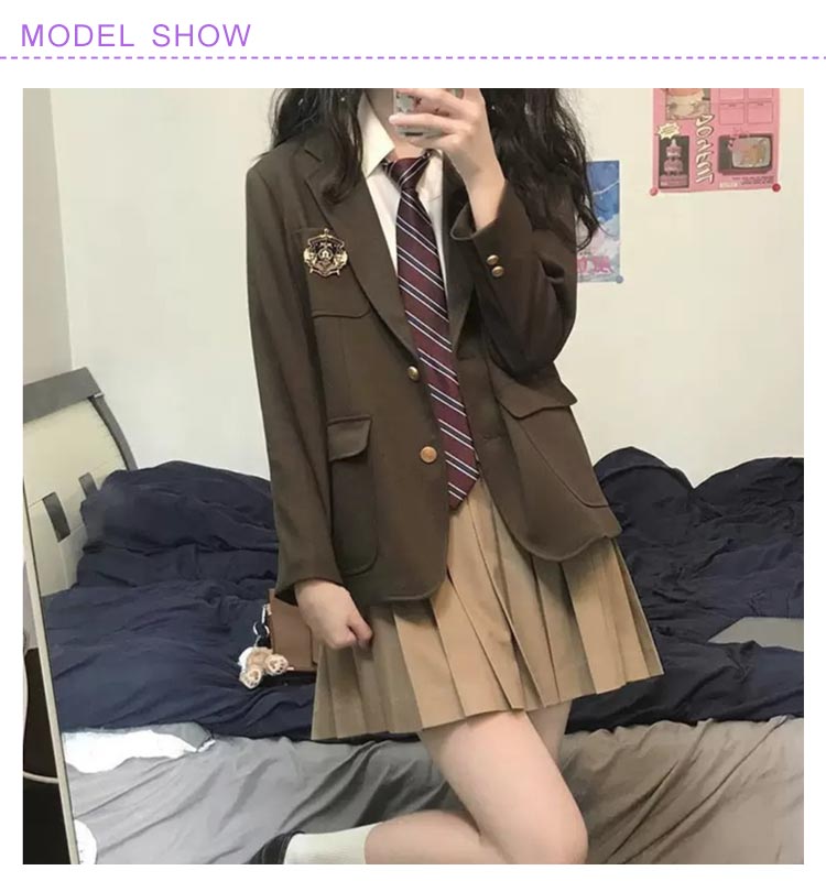 女子 ブラウン 制服 韓国 卒服 スク 学生服 スカート 人気 4点セットブラウン 4点セットブラック S M L XL 2L 3L 4L