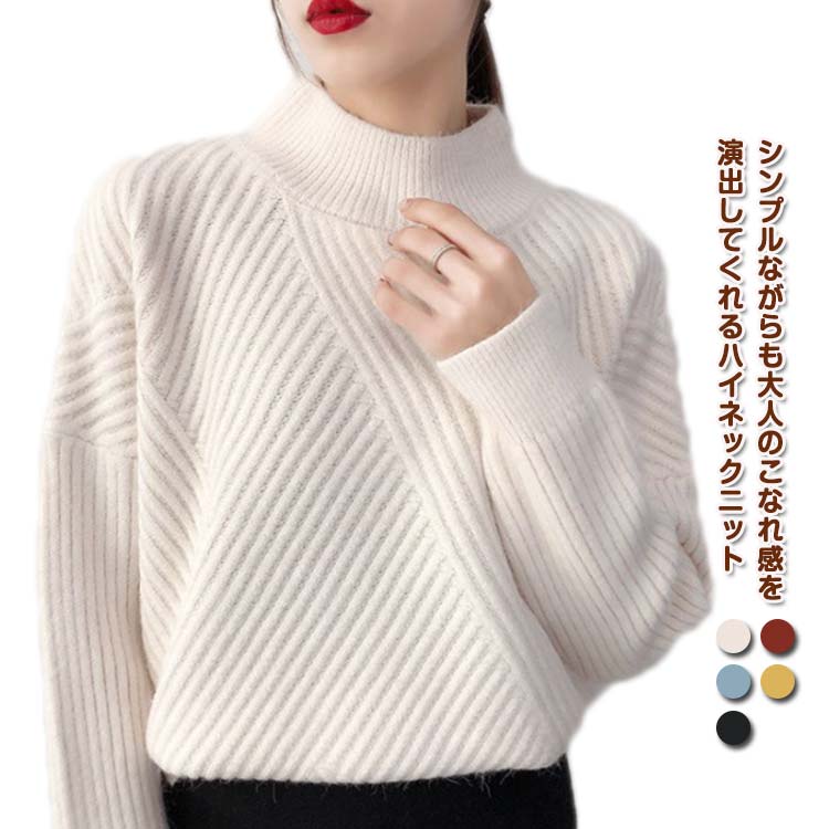 長袖 トップス 50代 ハイネック 秋 トップス ニット セーター セーター 豊富 ホワイト イエロー レッド ブラック ブルー