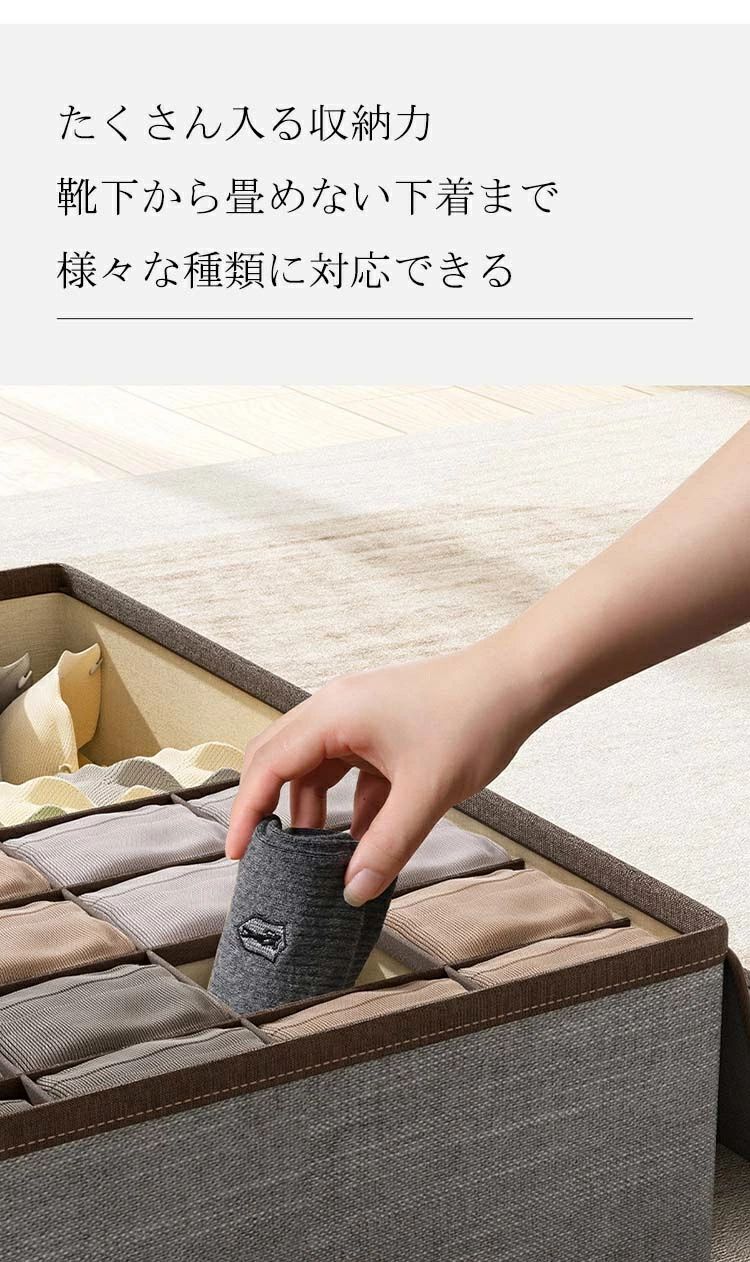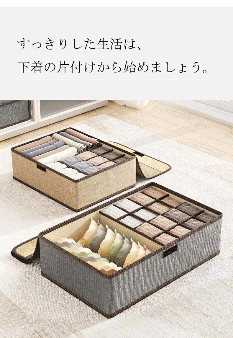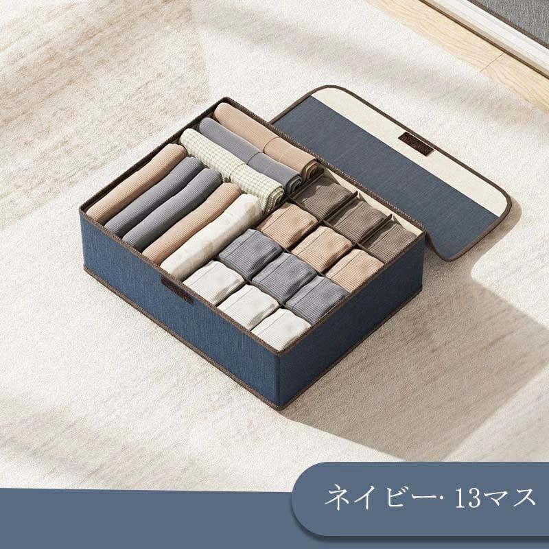 仕切りケース 蓋付き 収納ボックス 布 グレー(17マス) グレー(13マス) ネイビー(17マス) ネイビー(13マス) ベージュ(17マス) ベージュ(13マス) グリーン(17マス) グリーン(13マス)
