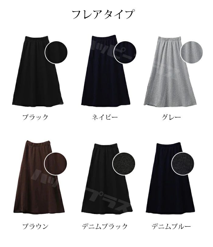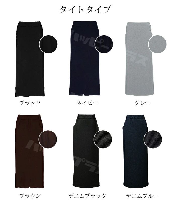 裏起毛 マキシスカート ロングスカート レディースファッション 通販 ブラック ネイビー グレー ブラウン デニムブラック デニムブルー フレアタイプ タイトタイプ