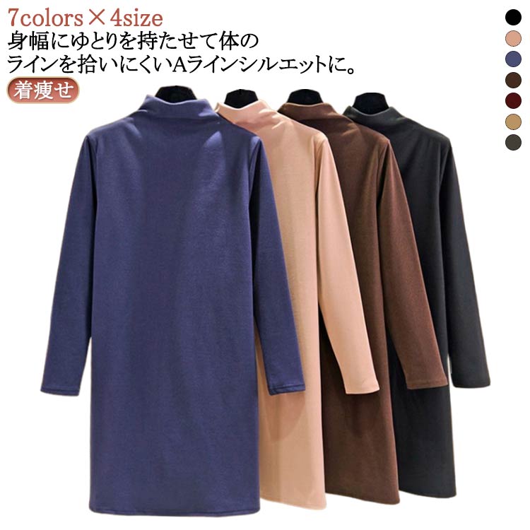 チュニック ハイネック レディース あ トップス Tシャツ カットソー 人気 ブラック ピンク ネイビー コーヒー ワイン ベージュ グレー M L XL 2XL