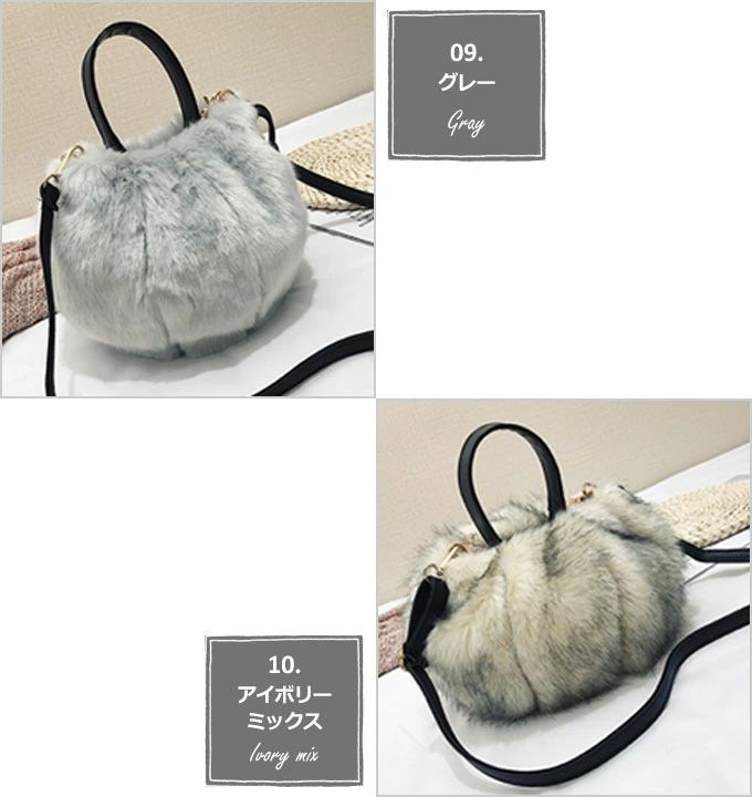 ファーバッグ ショルダー 巾着 レディ バッグ レディースバッグ ショルダーバッグ メッセンジャーバッグ 新作 01.ホワイト 02.ピンク 03.バーミリオン 04.ダークパープル 05.グリーン 06.ターコイズ 07.ブルー 08.ブラック 09.グレー 10.アイボリーミックス 11.パープル 12.レオパード柄