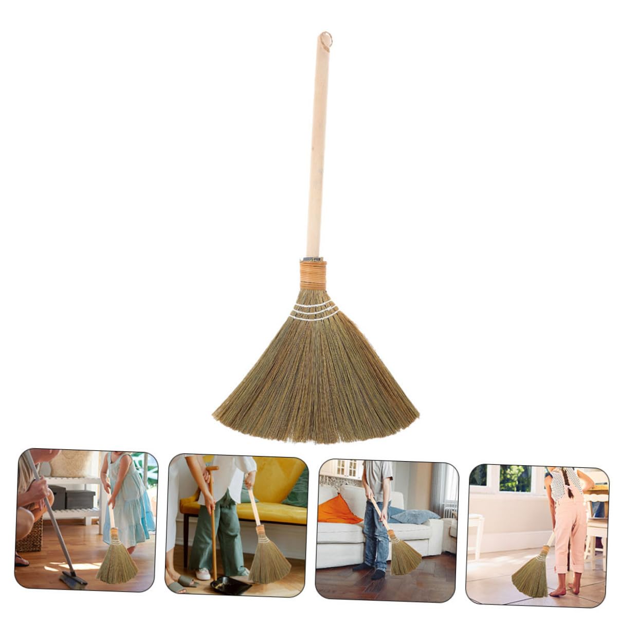 手編みトウモロコシほうき 長柄わらほうき 家用室内掃除用 や玄関 リビングの床掃除に 柔らかい穂先でホコリをしっかりキャッチ