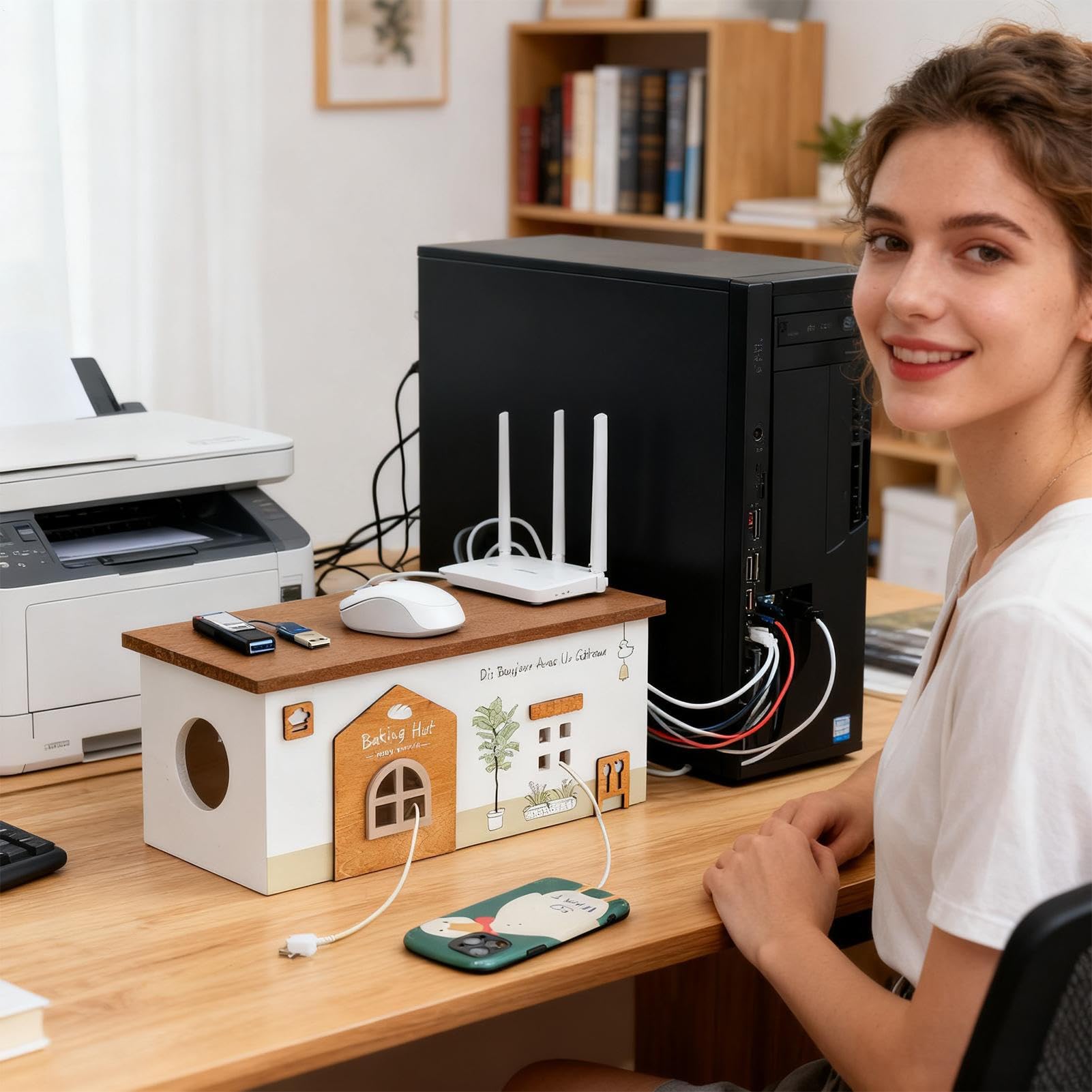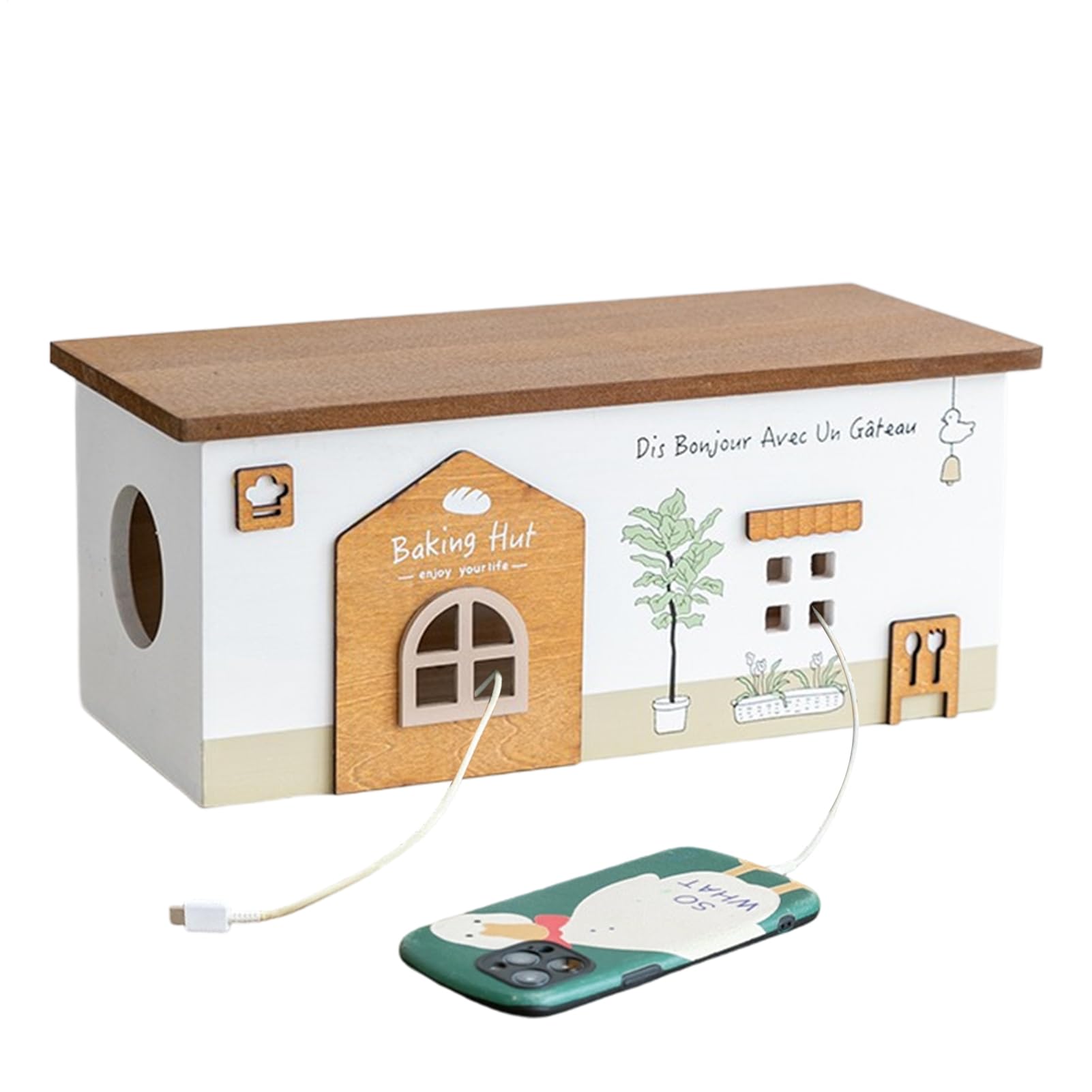 ケーブル整理ボックス収納,木製キャビンデザイン収納容器 | ワイヤー整理ボックス,屋外デスク工芸電子機器ガレージ電話テレビ旅行用収納ケース