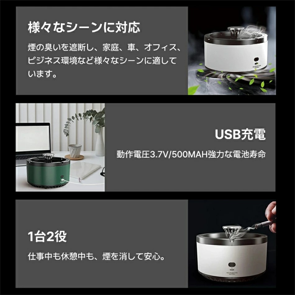 空気清浄用灰皿 空気清浄機 煙草 タバ ホビー 超目玉商品 グリーン ホワイト 電池タイプ 充電タイプ