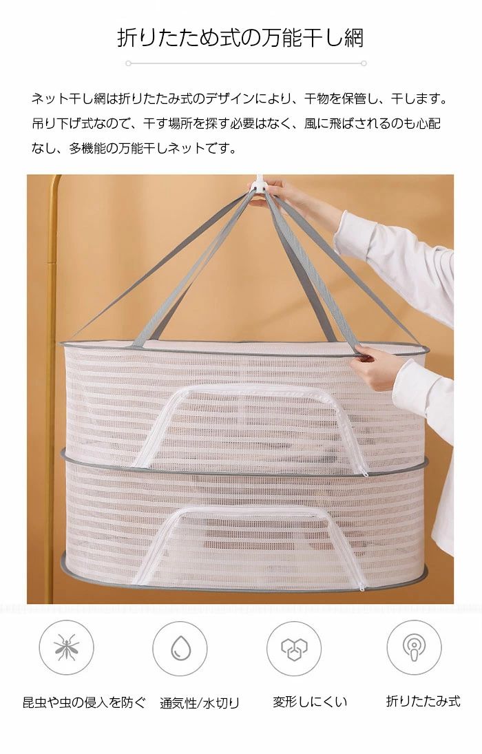 平干しネット 折り畳み ハンギングドラ 2層タイプ 3層タイプ