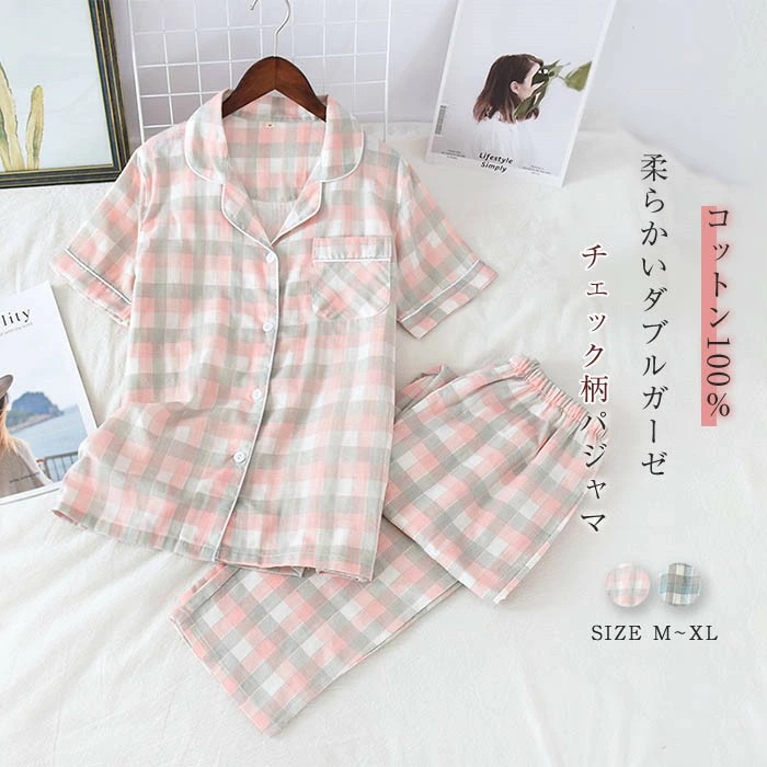 ガーゼ パジャマ レディース ルームウ レディース ナイトウェア ルームウェア ルームウェア 上下セット 人気 ピンク グレー水色 M L XL