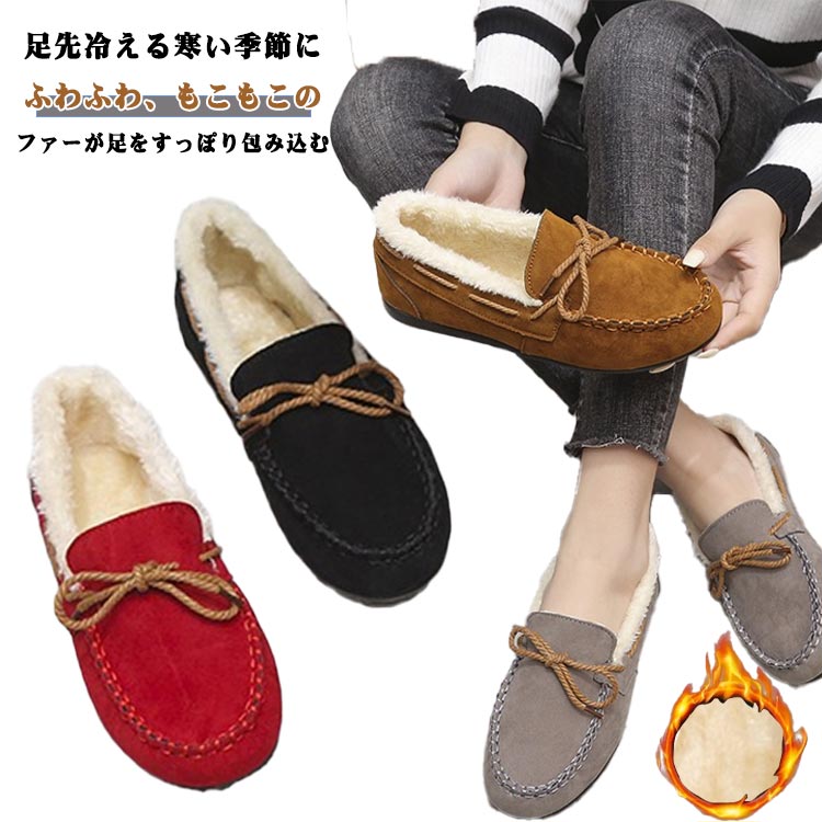 ファーモカシン フラットシューズ 裏起 レディース靴 パンプス 続々登場 レッド ブラウン ブラック グレー 35 36 37 38 39 40 41