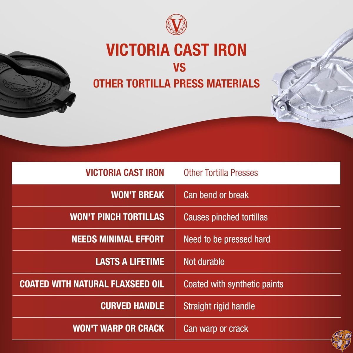 Victoria 8インチ 商用グレード 鋳鉄製 トルティーヤプレス 超高耐久HD鉄製 ビクトリア TOR001 20cm 鋳鉄 HDアイアン Tortilla タコス プレス ブリトー Press