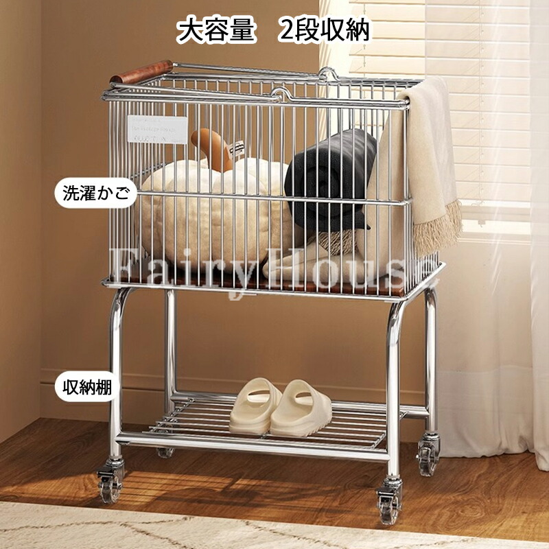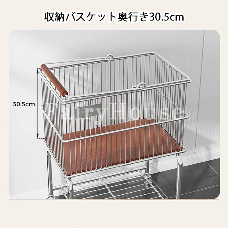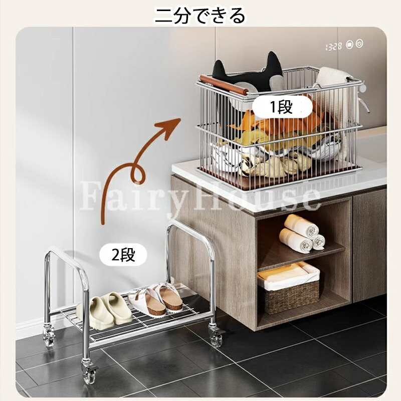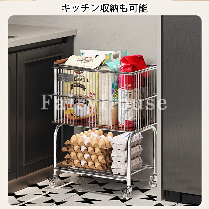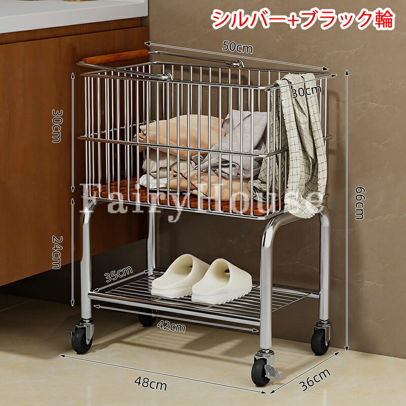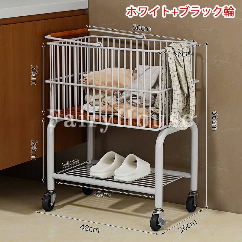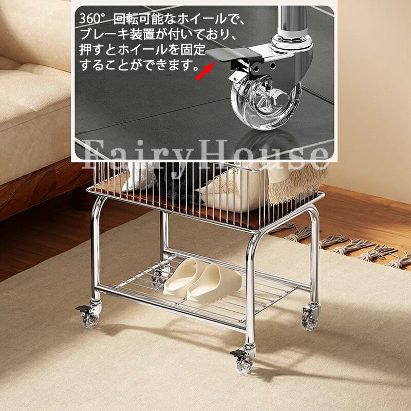 ランドリートロリー 2段ワイヤーバスケ シルバー+ブラック輪 ホワイト+ブラック輪 シルバー+透明輪 ホワイト+透明輪