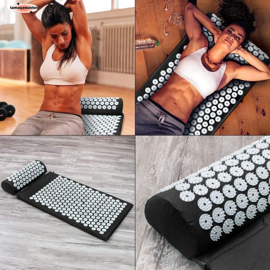 指圧マットと枕のセット グレー 背中 猫用品 ベッド マット 寝具 マット 続々登場 ブラック 赤 グリーン マゼンタ ブルー ホワイト グリーン2 うすむらさき グレー