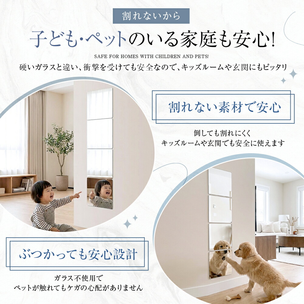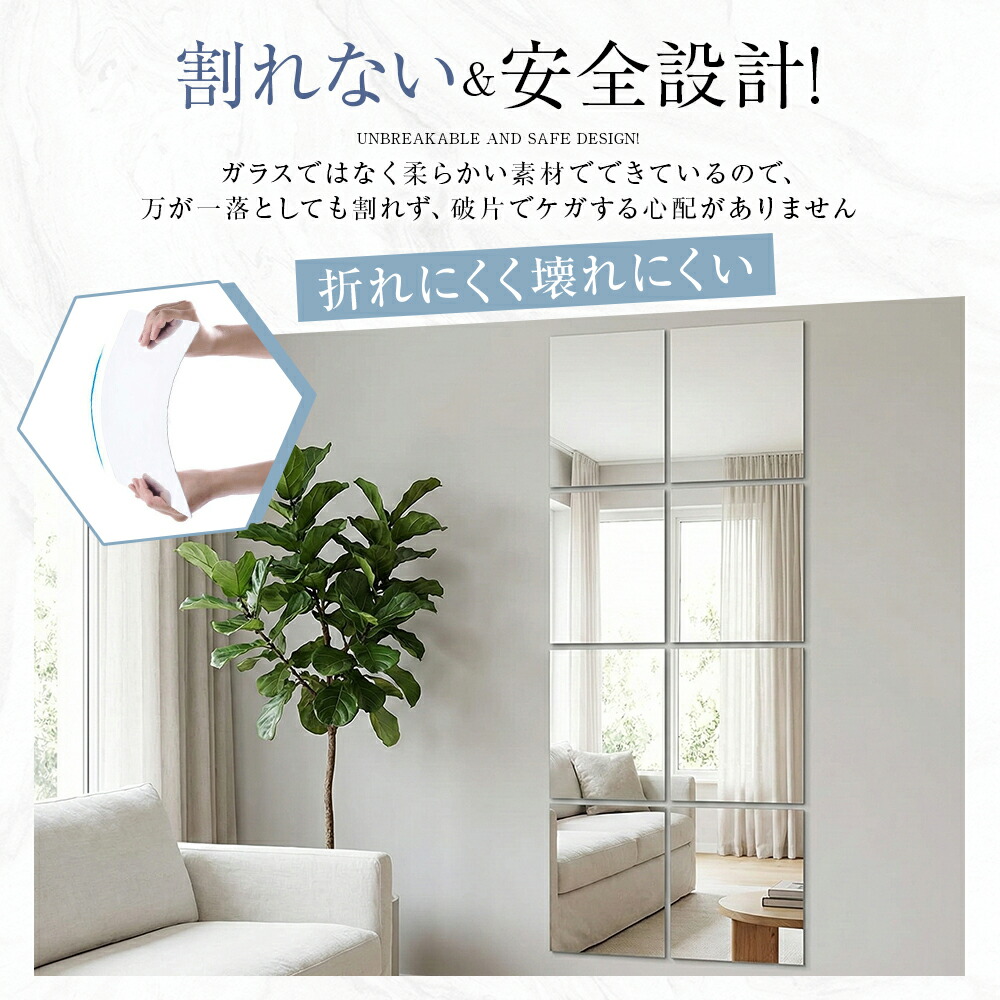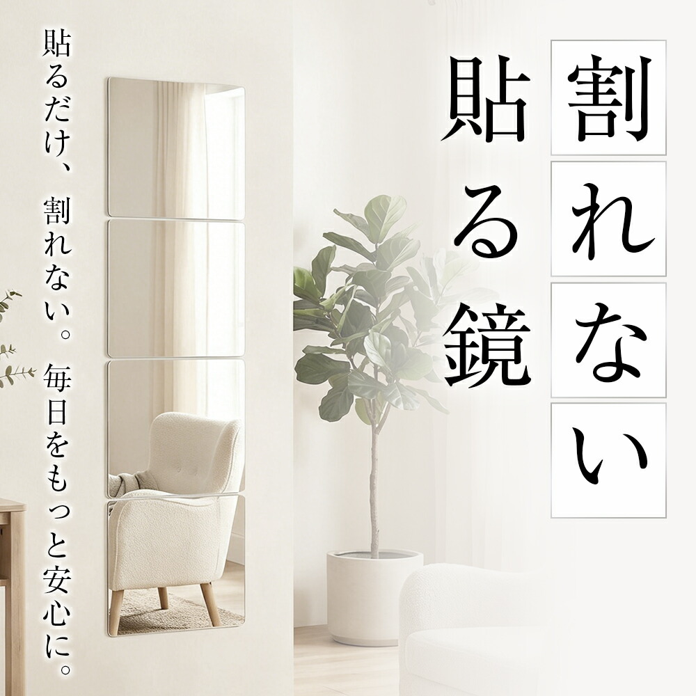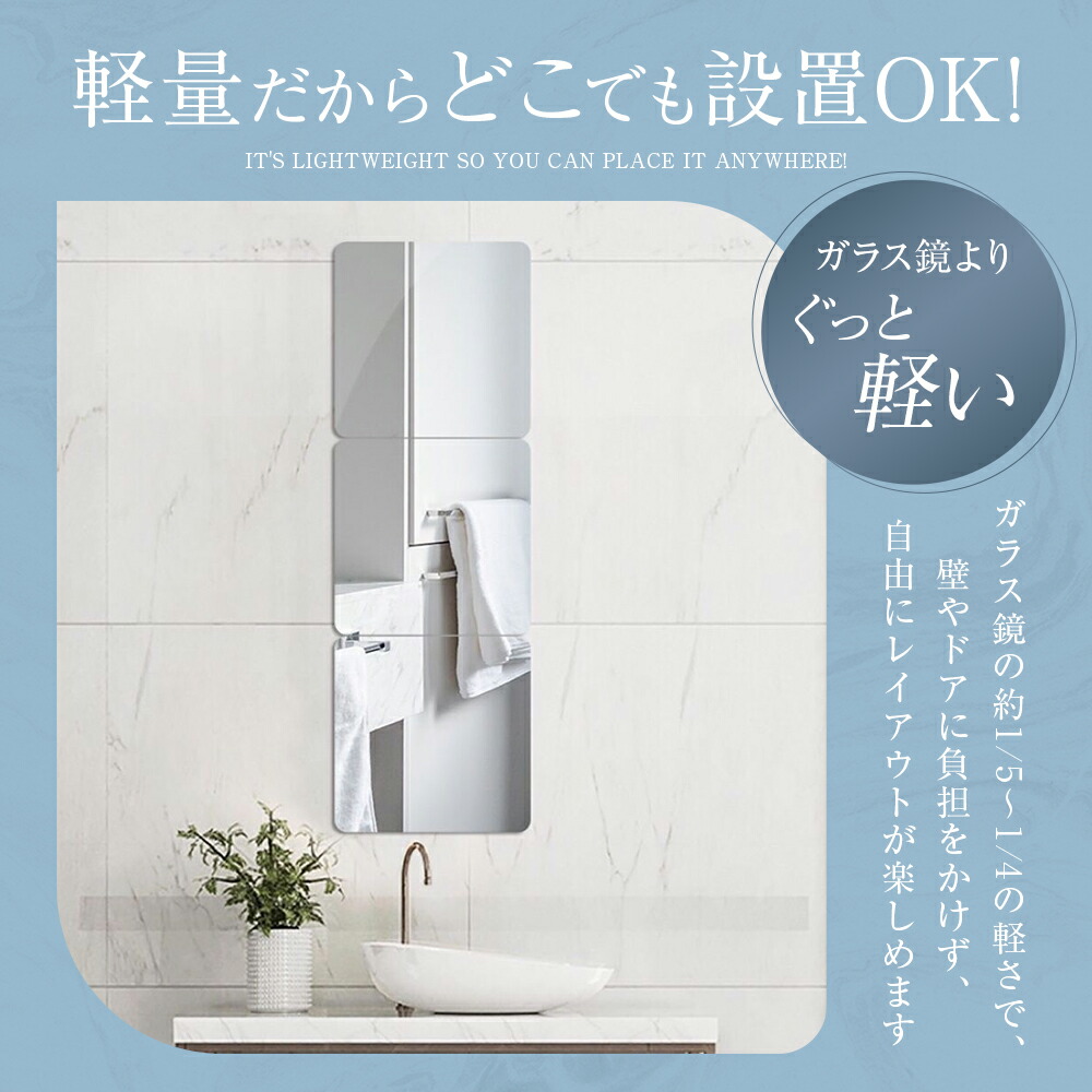 割れない鏡 貼るだけ ミラー アクリル シャープ角 丸角 20cmx20cm(2枚) 20cmx20cm(4枚) 20cmx20cm(6枚) 30cmx20cm(2枚) 30cmx20cm(4枚) 30cmx20cm(6枚) 30cmx30cm(2枚) 30cmx30cm(4枚) 30cmx30cm(6枚)