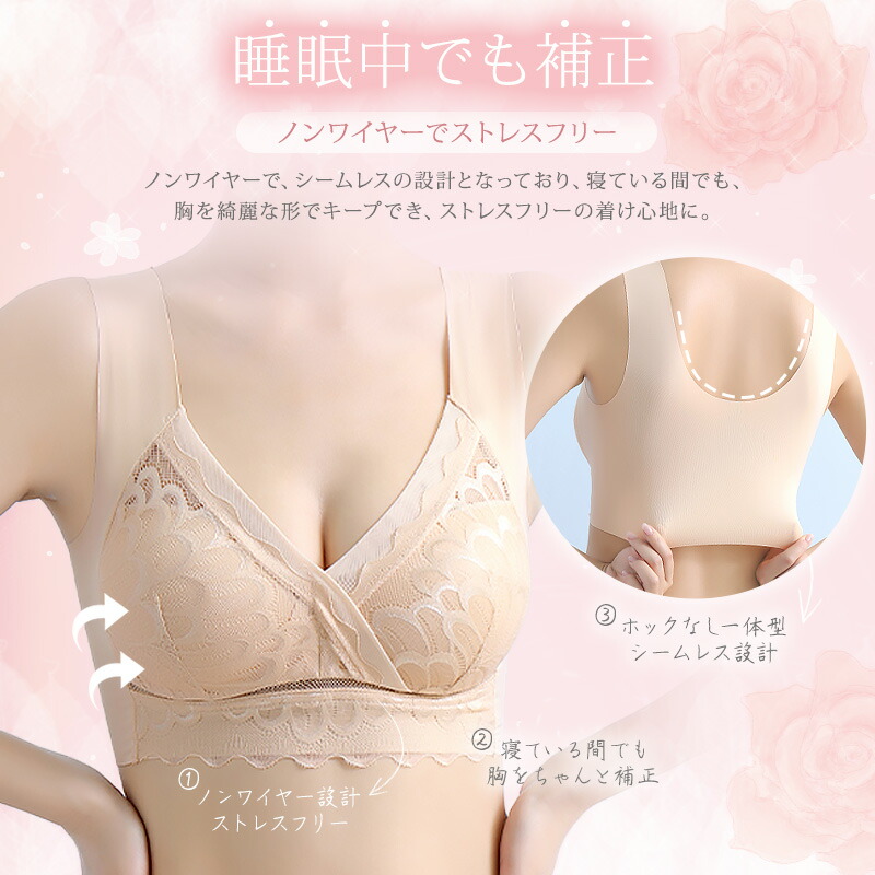 ナイトブラ ブラジャー とろけるブラ インナー 下着 ナイトウエア 通販 ブラック グレー ベージュ ピンク M L LL(XL) 3L(2XL) 4L(3XL) 5L(4XL)