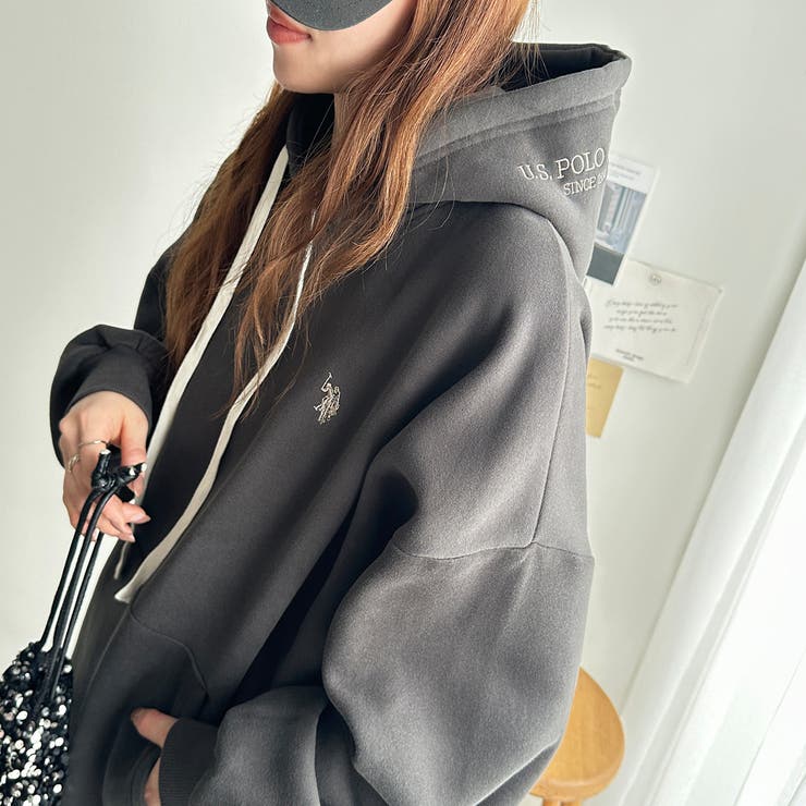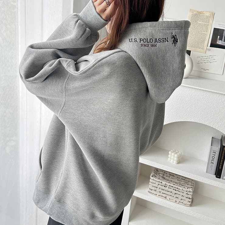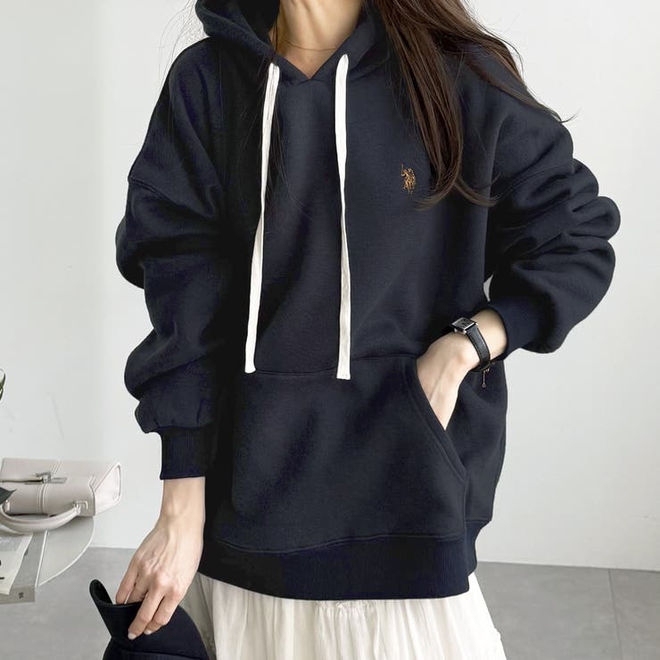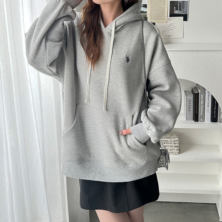 GeeRA フード刺しゅう裏起毛パーカー トップスパーカー