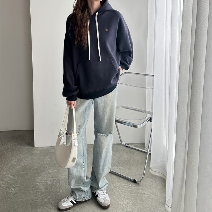 フードのロゴ刺繍が特別感たっぷりのスウェットパーカー