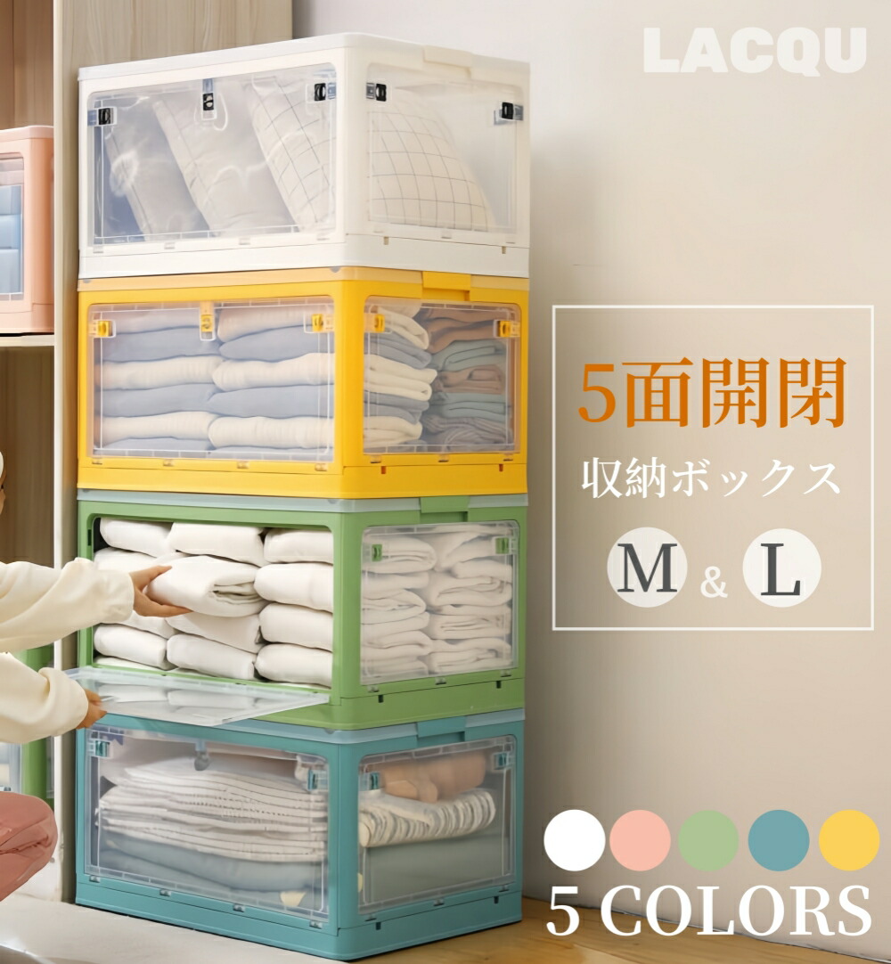 収納ボックス 5面開閉 1~3個組 蓋 S-28L(40.5*29*24cm) M-40.5L(47*35*24.5cm) L-56L(51.5*36.5*30.5cm) ホワイト ピンク グリーン イエロー ブルー