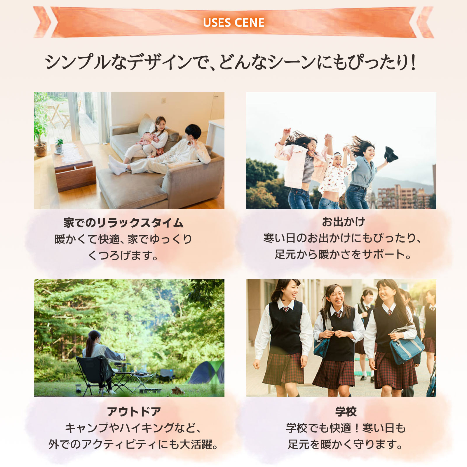 【快適フィット設計】 抜群のストレッチ性で足にぴったりフィット。窮屈感のない快適な履き心地と、ズレ落ちにくいリブ仕様の袖口で、一日中ストレスフリー。