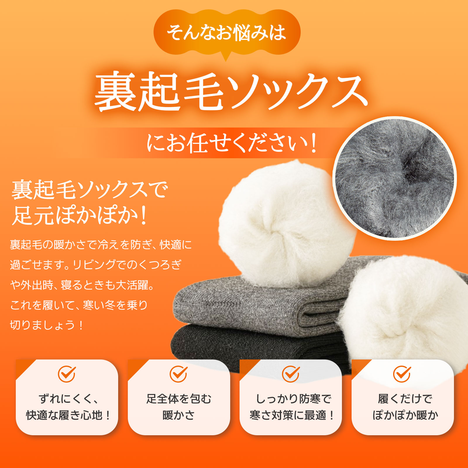 【究極の温かさ】 贅沢なパイル地の裏地で、まるで毛布に包まれているような心地よさ。履いた瞬間から足全体をぽかぽかと温め、優れた保温力で冬の足元を快適に。