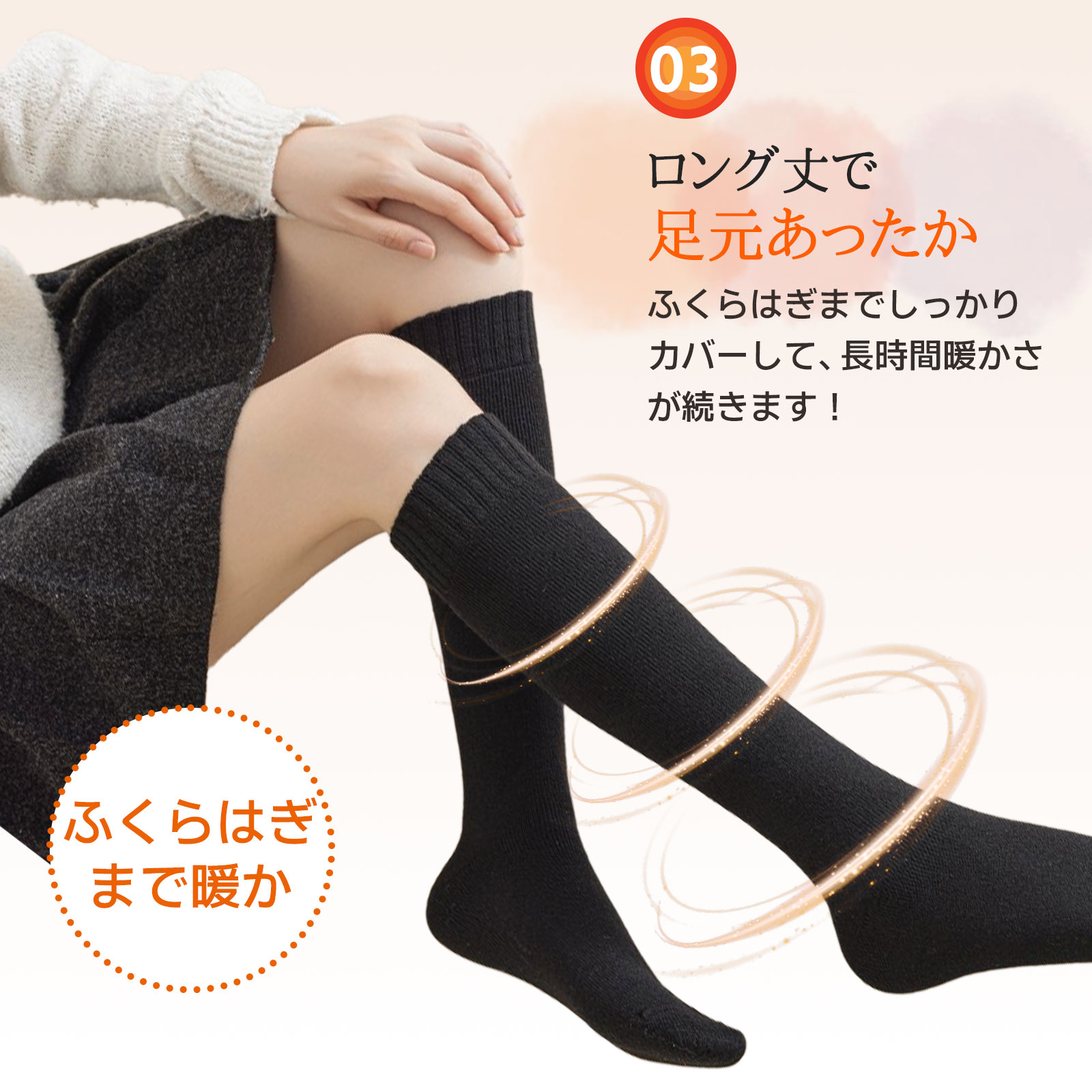 【美脚効果抜群】 適度な着圧で足のむくみをカバーし、すっきりとした美しいレッグラインを演出。スラリと伸びた脚のシルエットで、女性らしさを引き立てます。