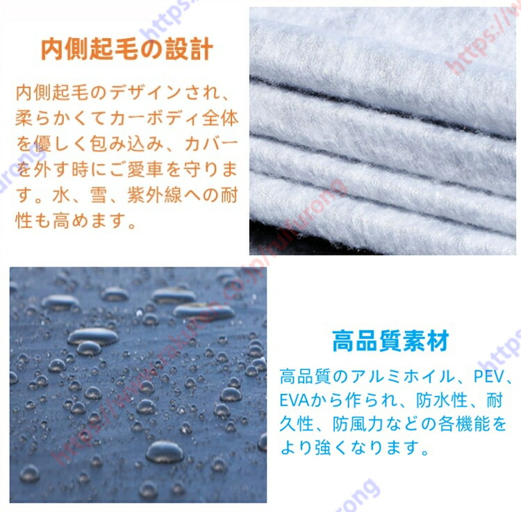 【防水・防汚】:雨による水垢・砂、汚れを防御カバー防水・防汚素材のため、雨や黄砂などあらゆる汚れを寄せ付けません。他のカーカバーより防水性に優れている。