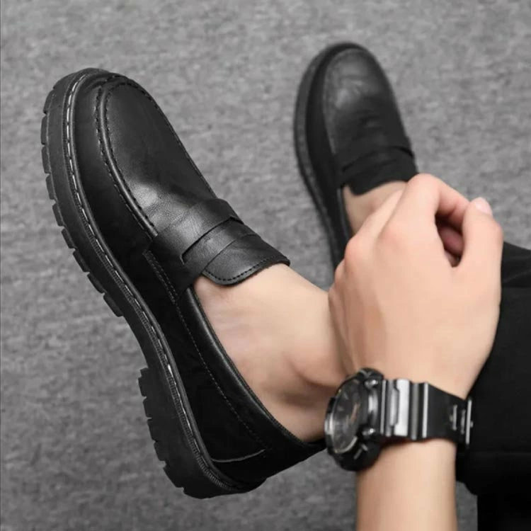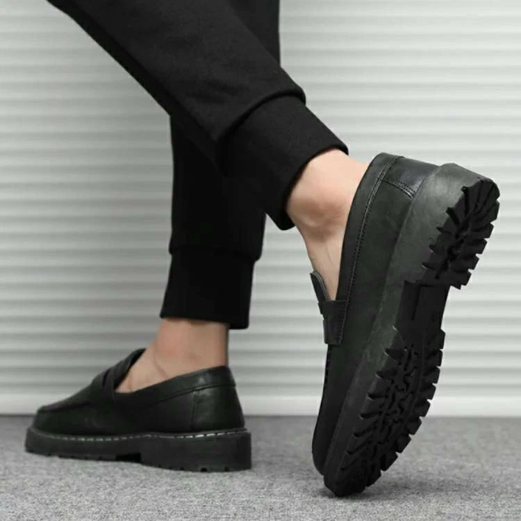 ローファー メンズ 歩きやすい シューズ 通勤 通学 ビジネス カジュアル ヒール 厚底 スリッポン 紳士 学生 男性 レザー 黒 ビジネスシューズ フォーマル靴 ブラック