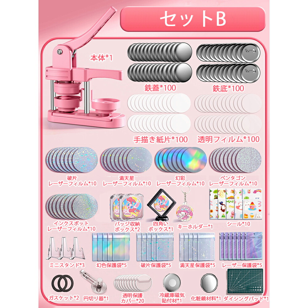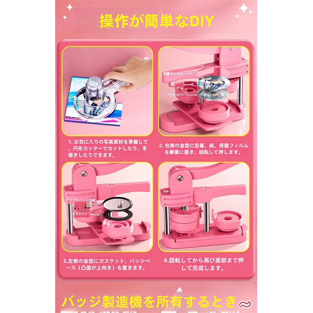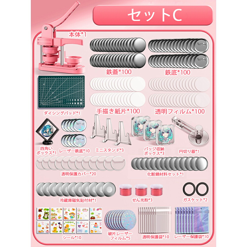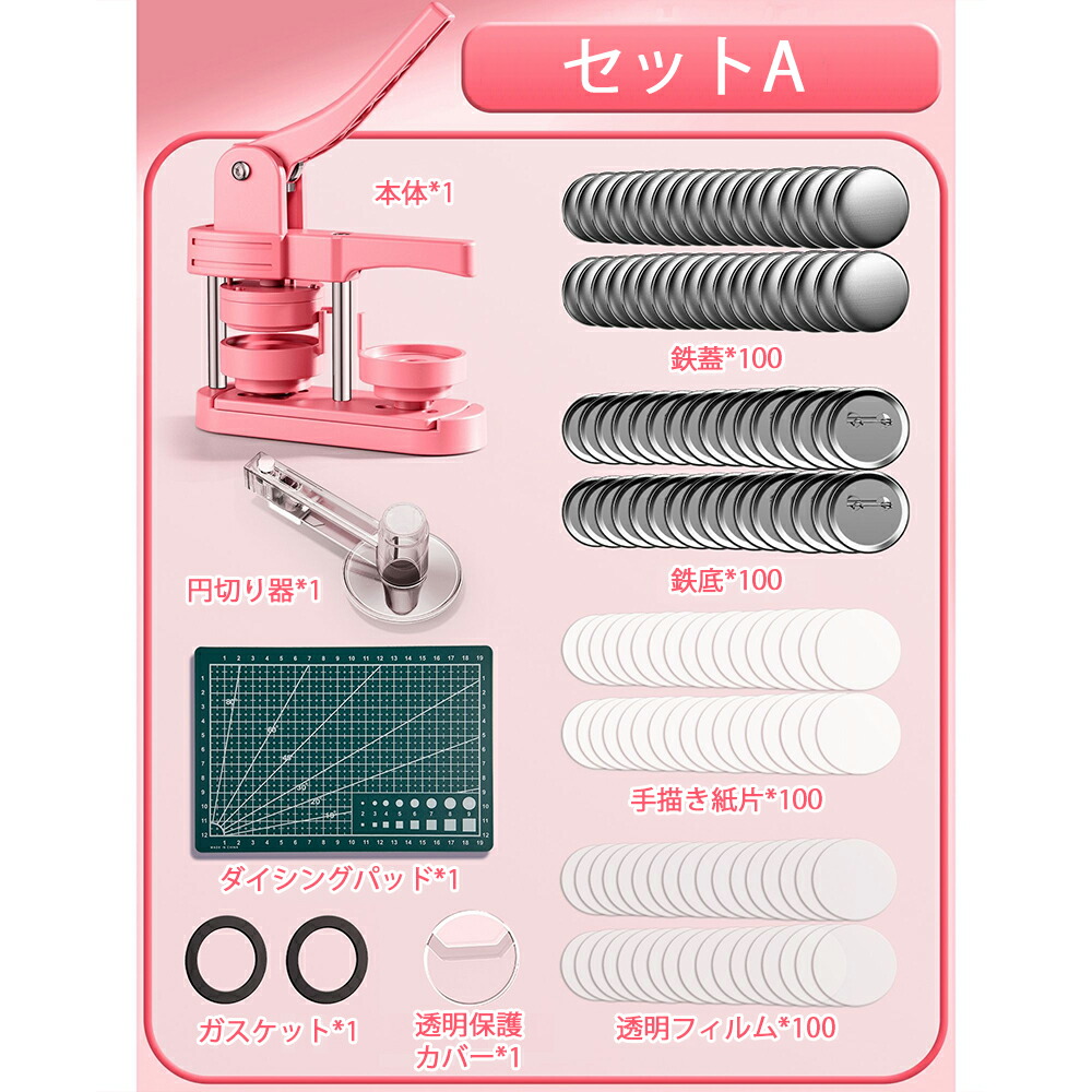 缶バッジマシーン 58mm金型 缶バッ コレクション 缶バッジ 特集 セットA セットB セットC セットD セットE セットF セットG セットH 本体だけ*1 ピンク グリーン