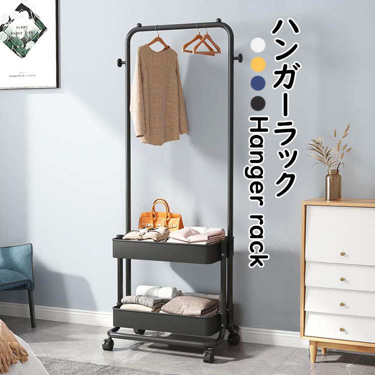 ハンガーラックおしゃれ スリム バスケ ホワイト ブラック イエロー ブルー