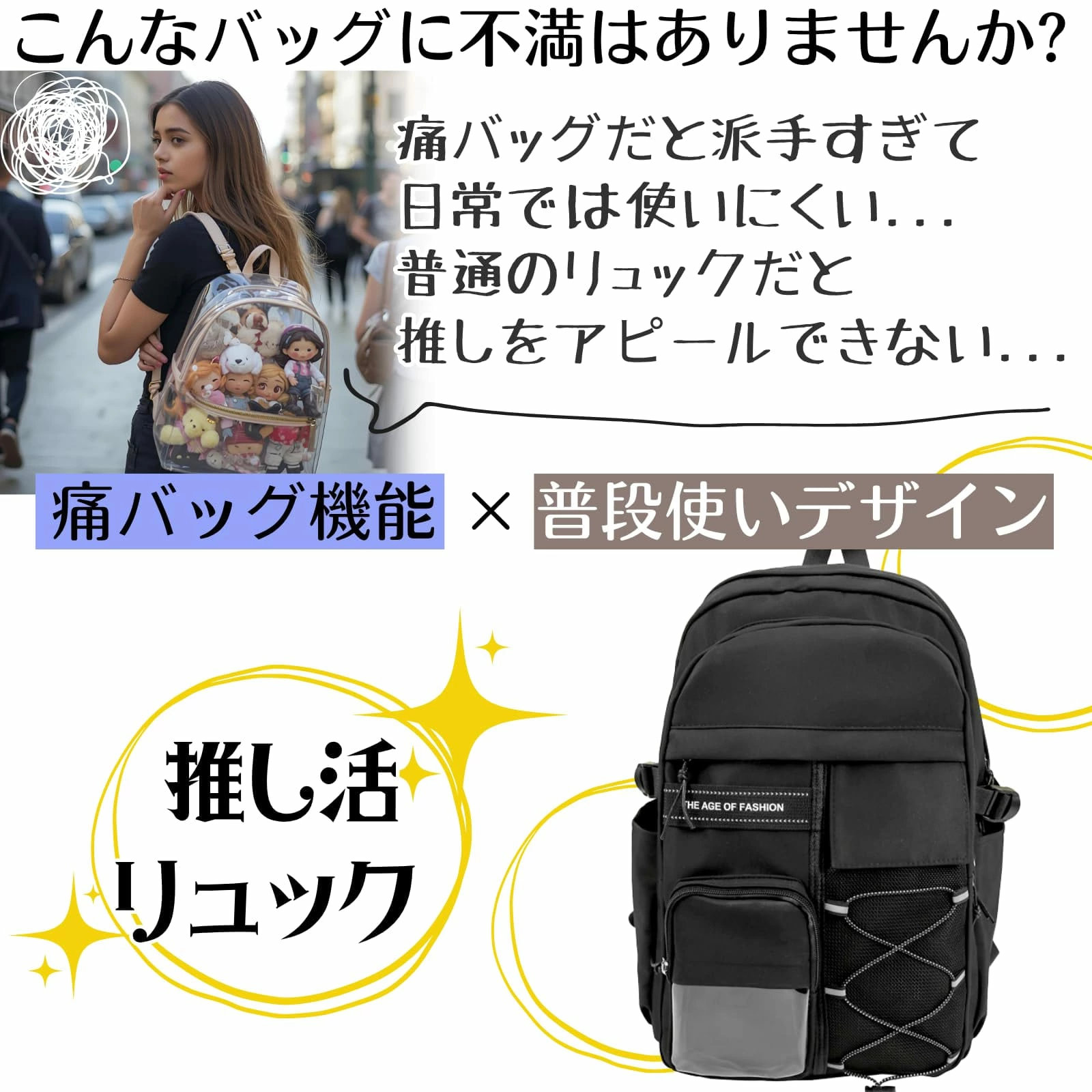 推し活リュック 痛バッグ 痛バ 推し活バッグ 軽量 大容量 大きめ ぬいぐるみ 透明 メンズ レディース いたばっく いたば 三八商店 痛リュック