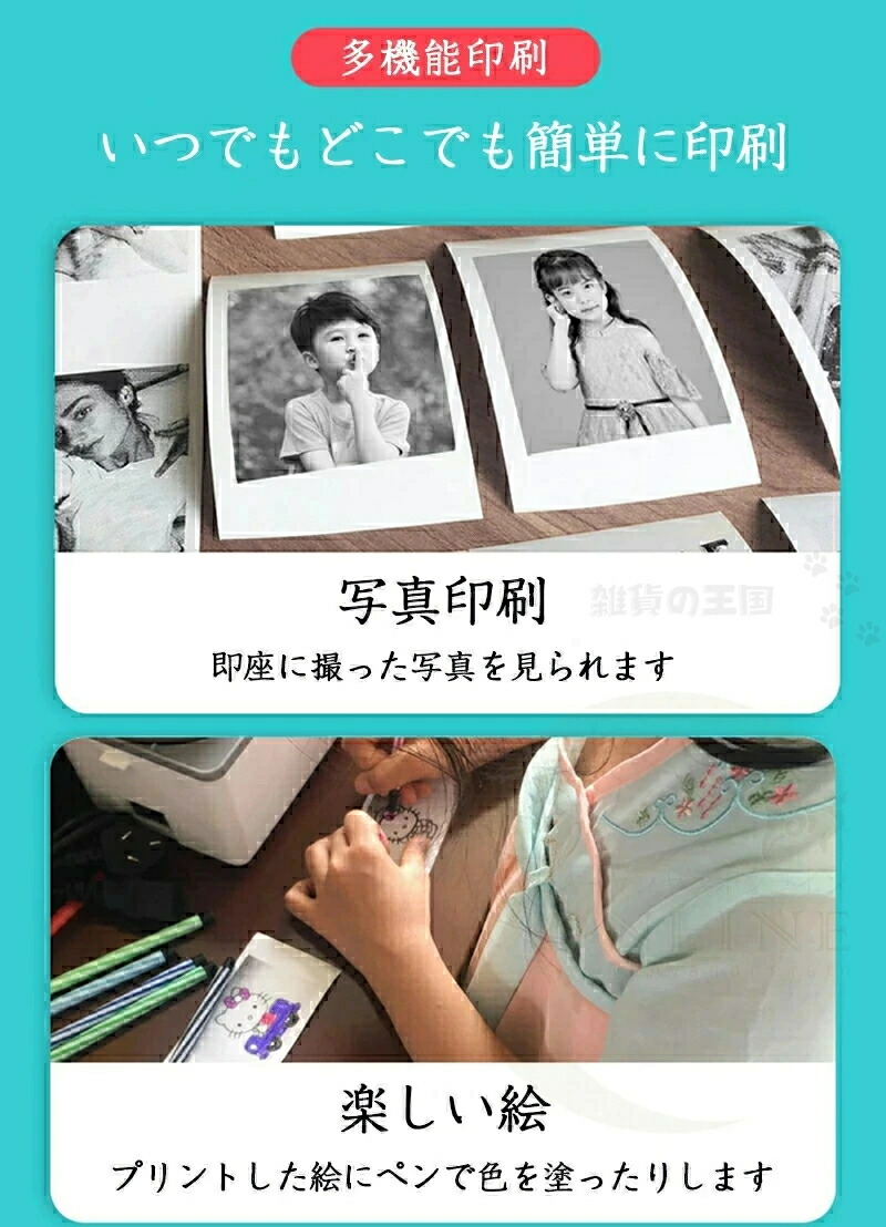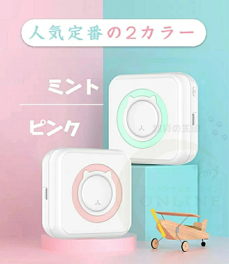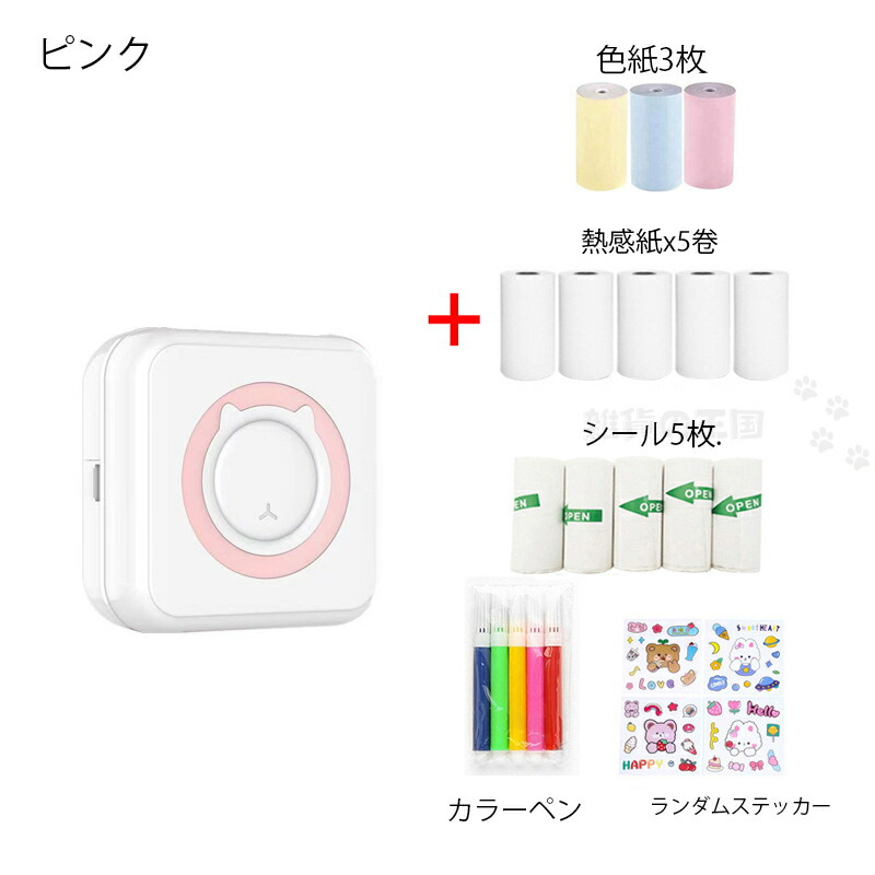 熱感紙5巻 小型 プリンター 持ち運び ピンク ミント