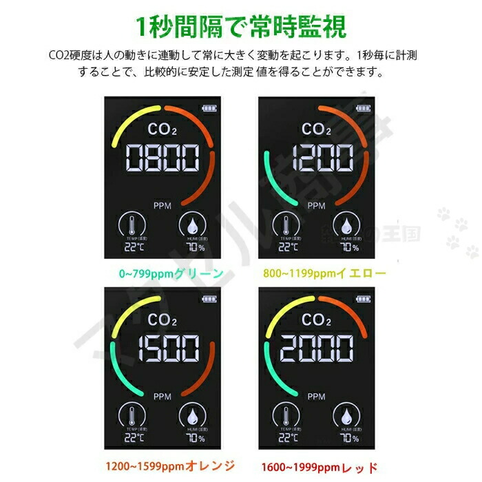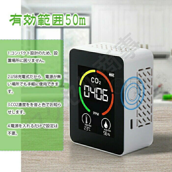 CO2濃度測定器 3in1 二酸化炭素 ホワイト ブラック