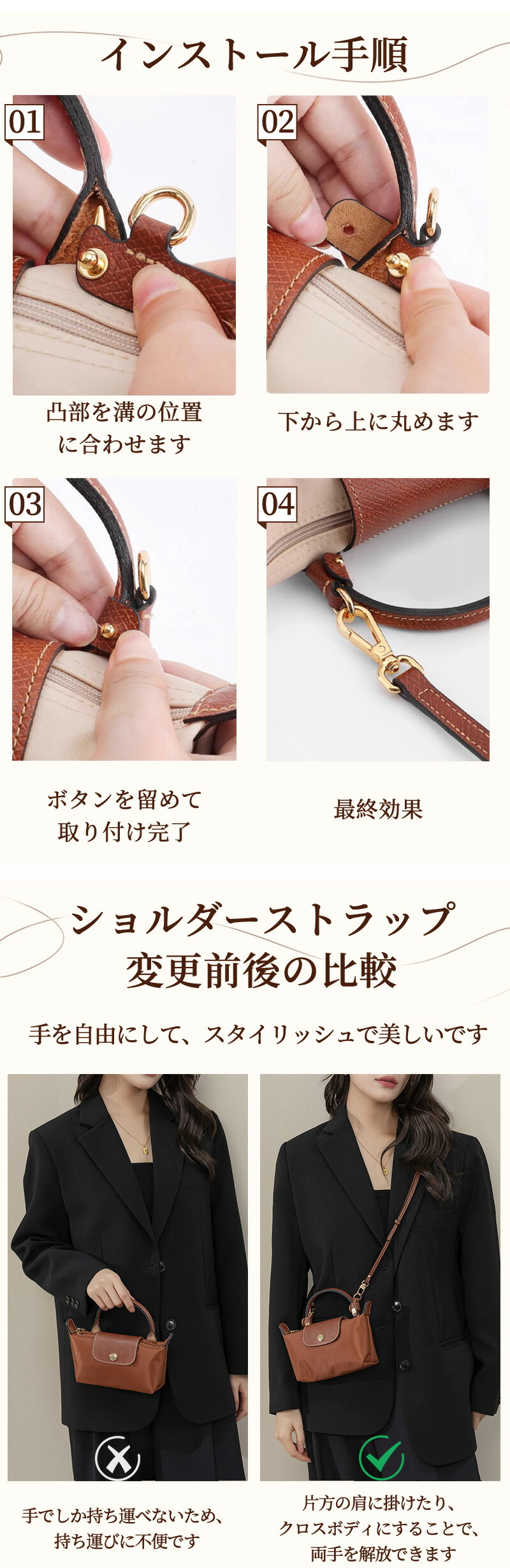 ストラップ ロンシャン ショルダーバッ バッグ 小物 ブランド雑貨 通販 ブラウンA ブラウンB マロンブラウン レッド ダスティピンク ペールピンク グレー ベージュ ブルー オレンジ ダークパープル ブラック ダークブルー ダークブラウン ダークグリーン オリーブグリーン