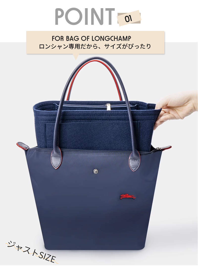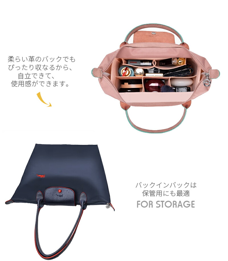 高品質バッグインバッグ ロンシャン バッグ ロンシャンバックインバック インナーバッグ バッグオーガナイザー 超軽量 自立 高級バッグ専用 整理整頓 形崩れ防止 ファスナー Bag in Bag 大きめ小さめ 収納 抜群 洗える仕切り整理