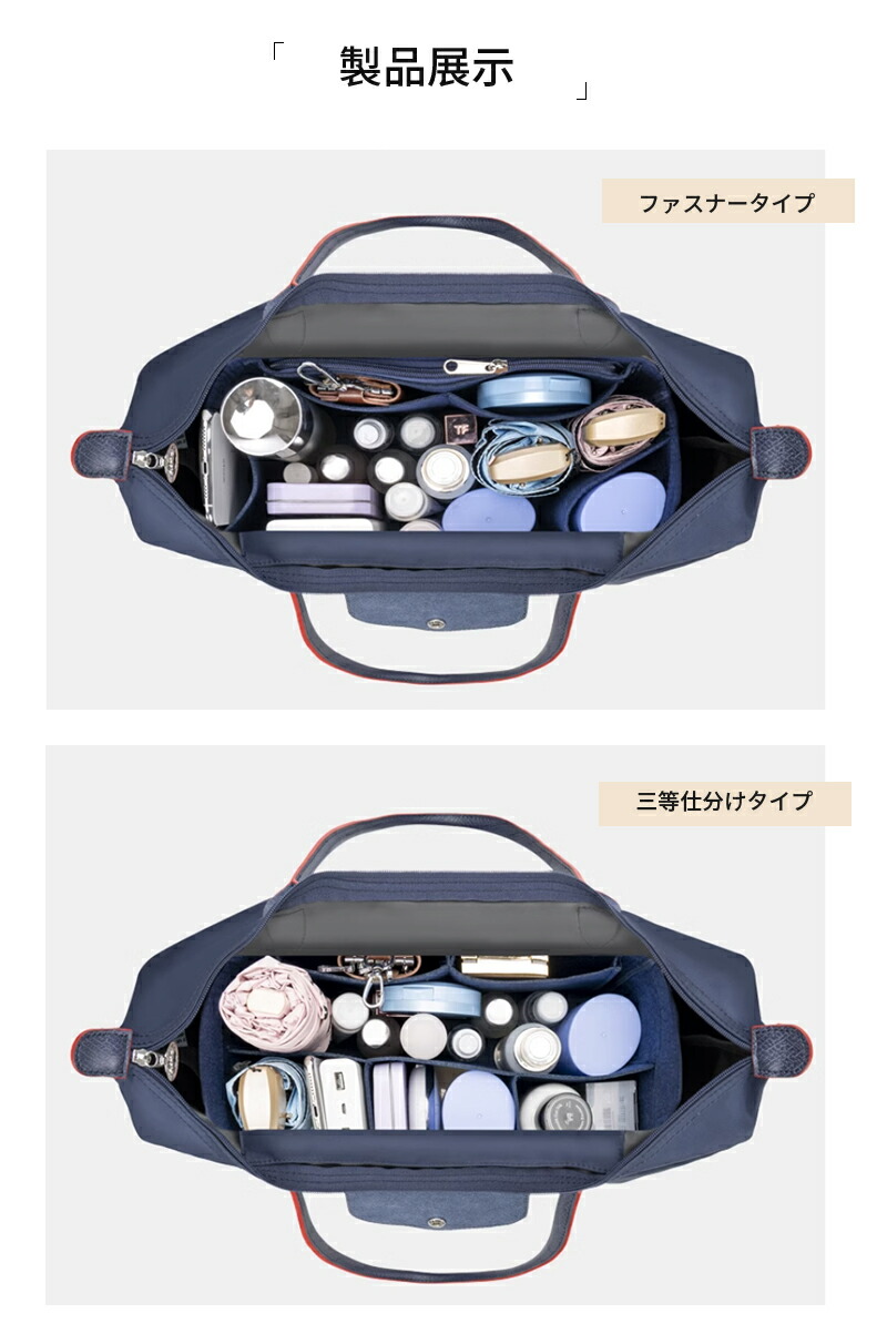 バッグインバッグ ロンシャン ロンシャンバッグ 収納力抜群 整理 大容量 ポケット付き バッグ オーガナイザー 軽量 自立 形崩れ防止 ファスナー 洗える インナーバッグインバッグ インナーポケ 収納