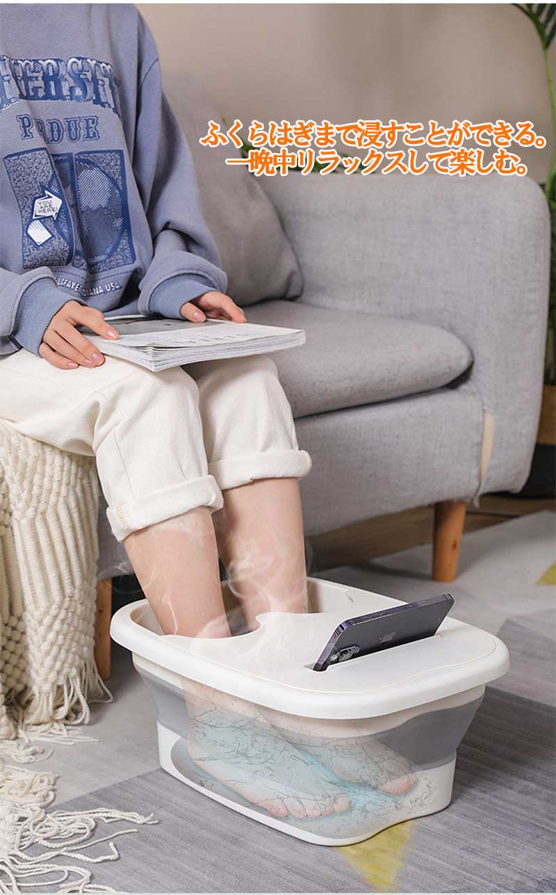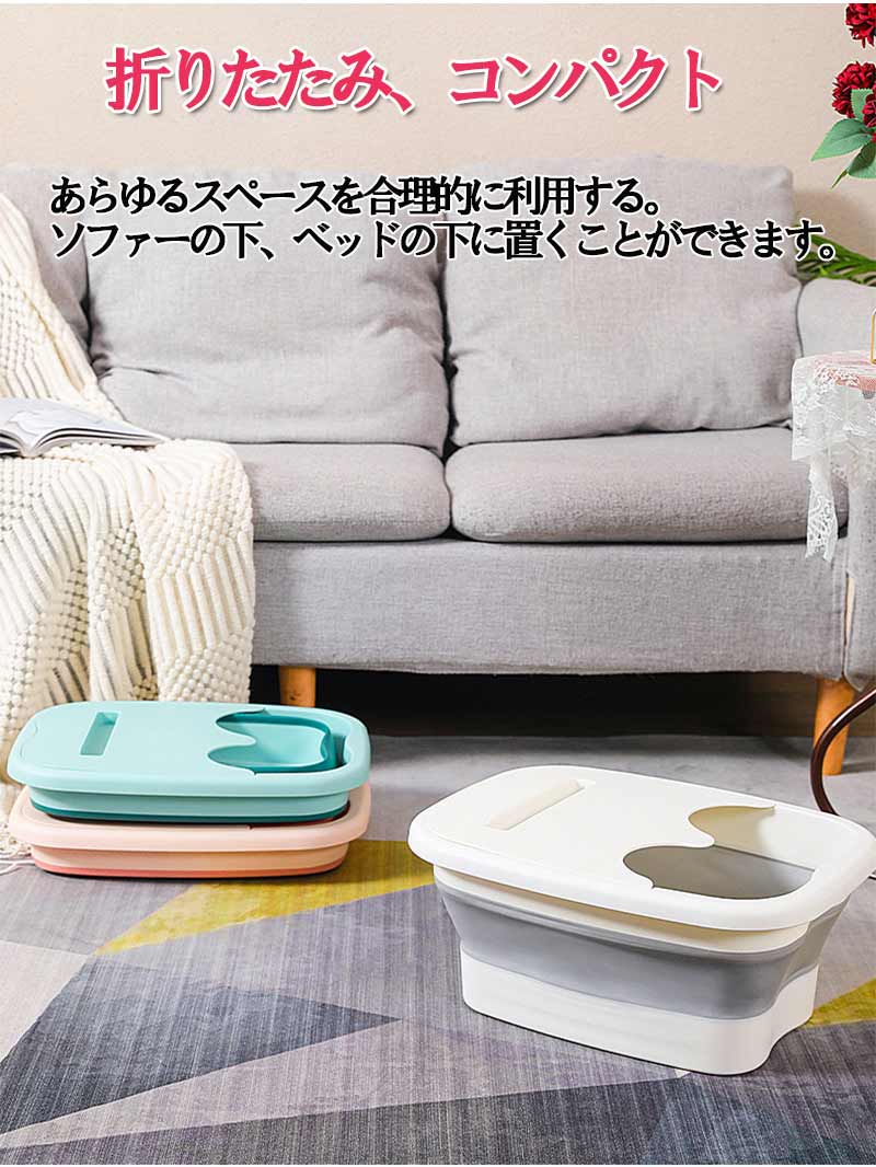 足湯 バケツ 脚 折り畳み 蓋あり 丈 ホワイト グリーン ピンク