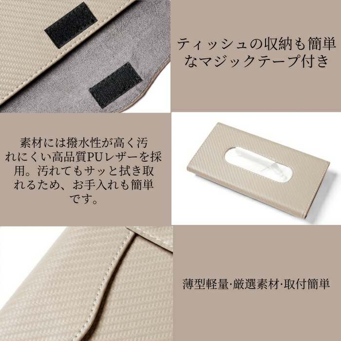 薄型、軽量、。簡単設置の車載ティッシュカバーです。