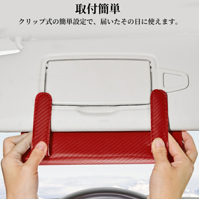 PUレザーの高級感と薄型仕様で車内にスッキリ馴染む。サンバイザー固定で使いやすい!