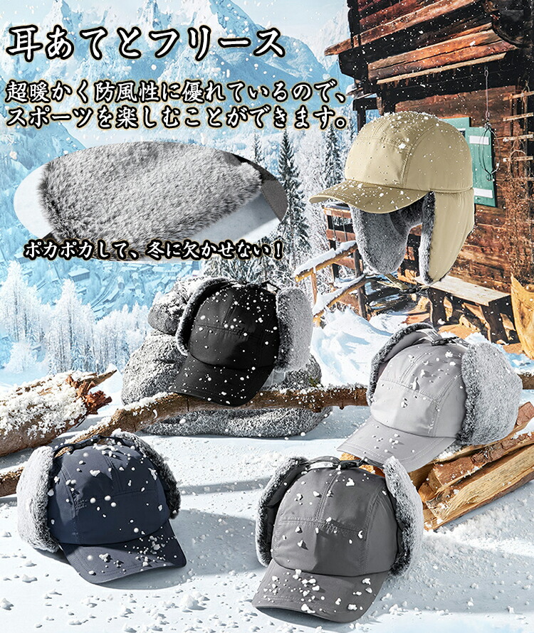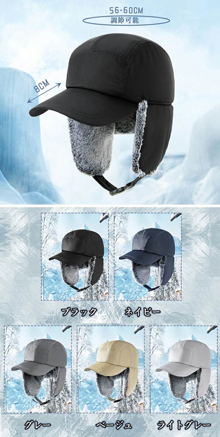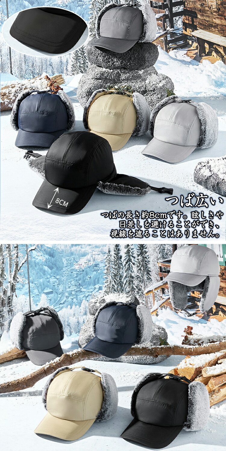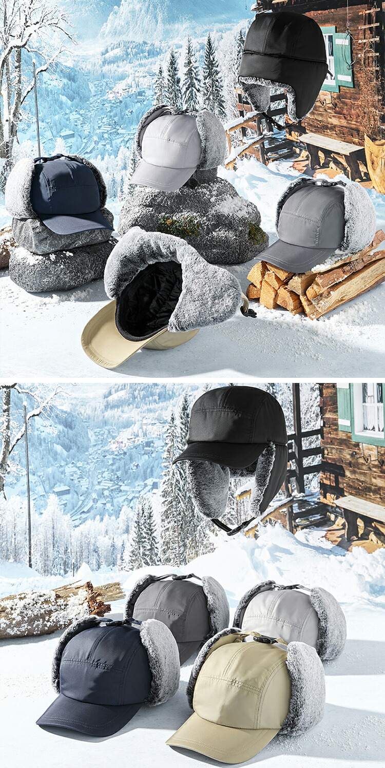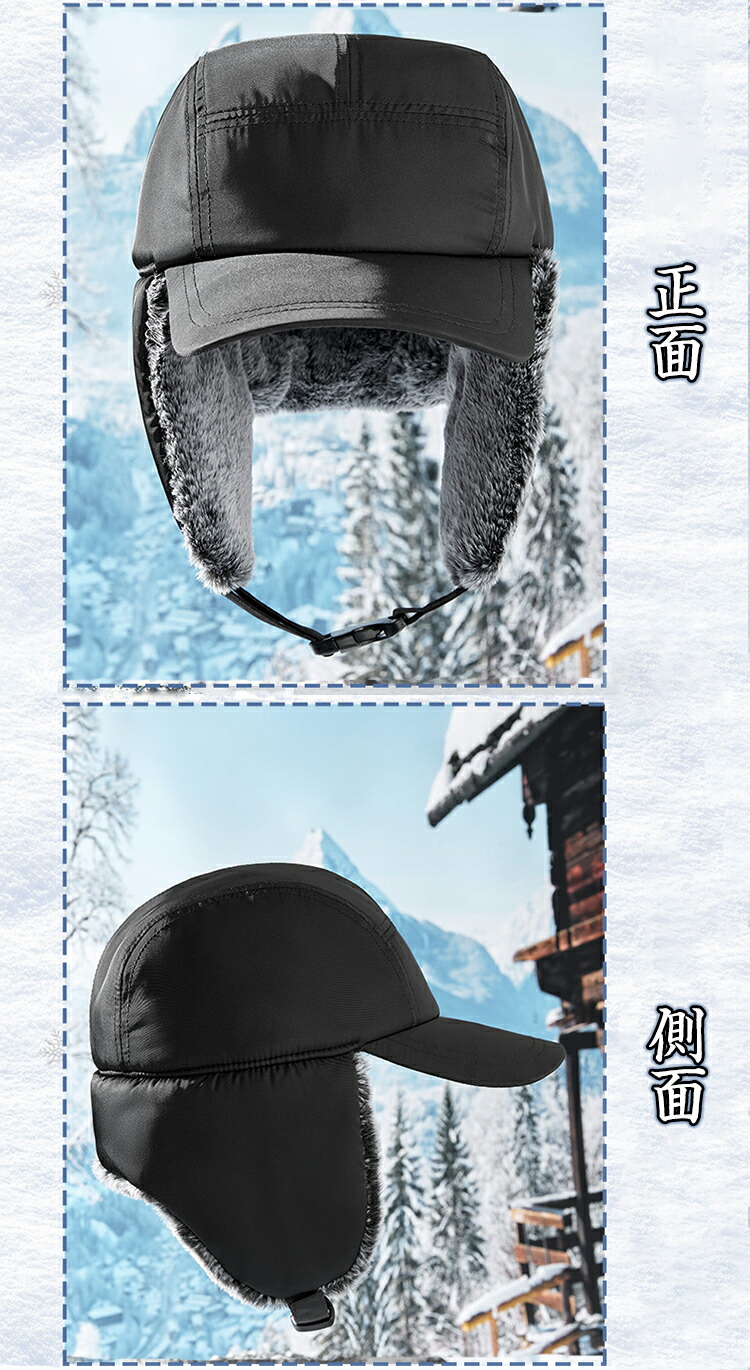 【防風の暖かい耳あて&あご紐】フェイクファーの折りたたみ&プルダウン式サイドフラップ、あご紐は保温に便利です。 自転車に乗っているときでも、風で帽子が吹き飛ば されることを防ぐことができます。