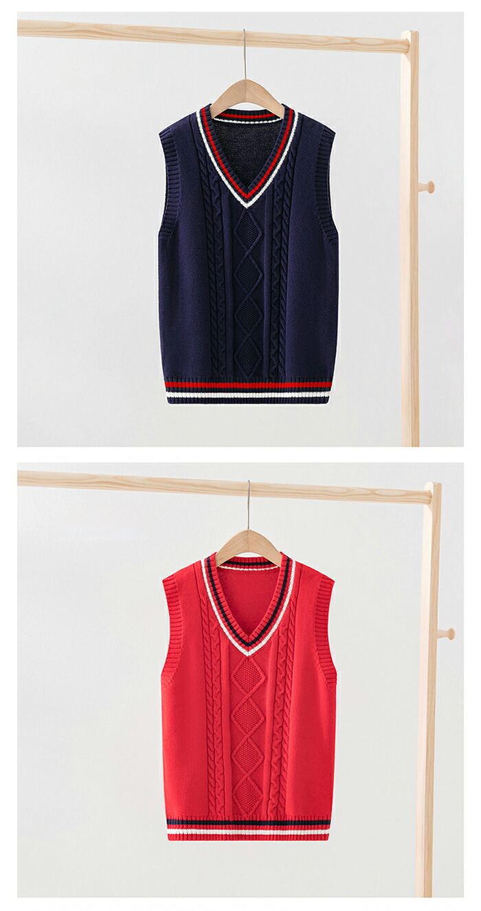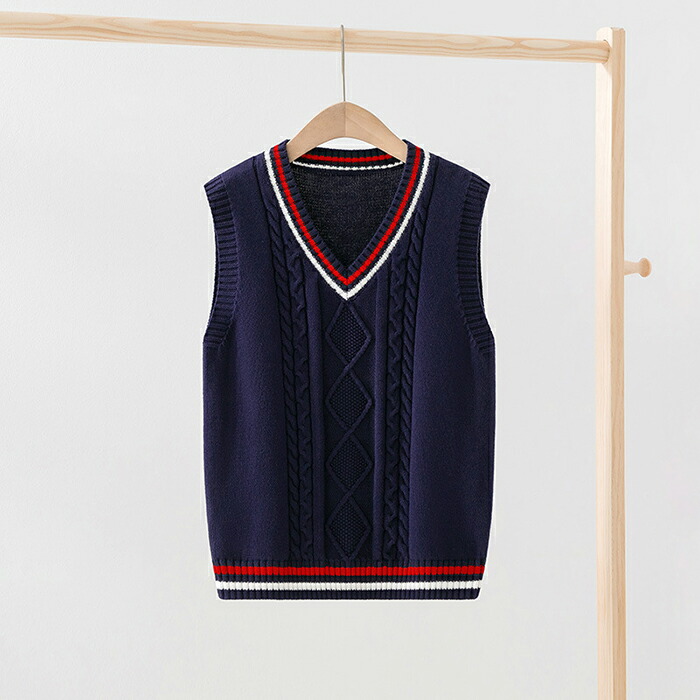 男女兼用 ニットベスト キッズ ジュニア コーデ Vネック トップス ニット フォーマルベスト 重ね着 綿 秋物 冬物 学生 子供服 ラインベスト 制服 学生服 高校 通学 学院風 セータ 中学