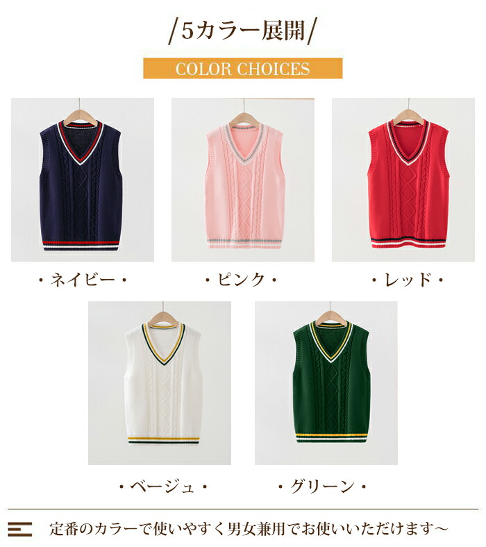 男女兼用 ニットベスト キッズ ジュニ レディースファッション 早い者勝ち ネイビー ピンク レッド ベージュ グリーン 110cm 120cm 130cm 140cm 150cm 160cm 170cm